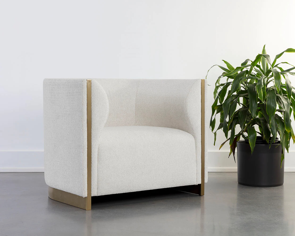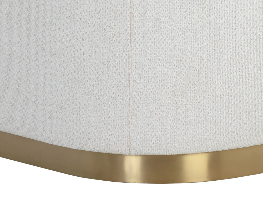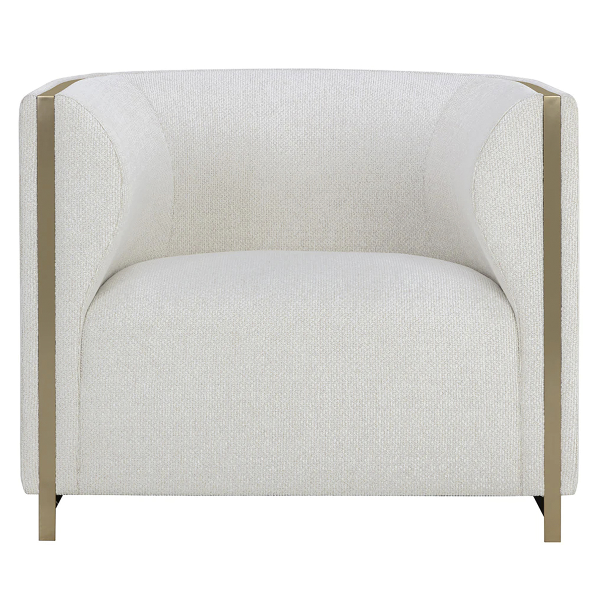 The Abbington Armchair balances mixed materials to bring this contemporary design to life. Expertly upholstered in a two-tone combination of black velvet and textured white black fabric for a mix of contrasting textures. Gold stainless steel metal inlay and padded curves accentuate the chair’s curved silhouette. Performance fabric is moisture repellent, durable and easy to clean.