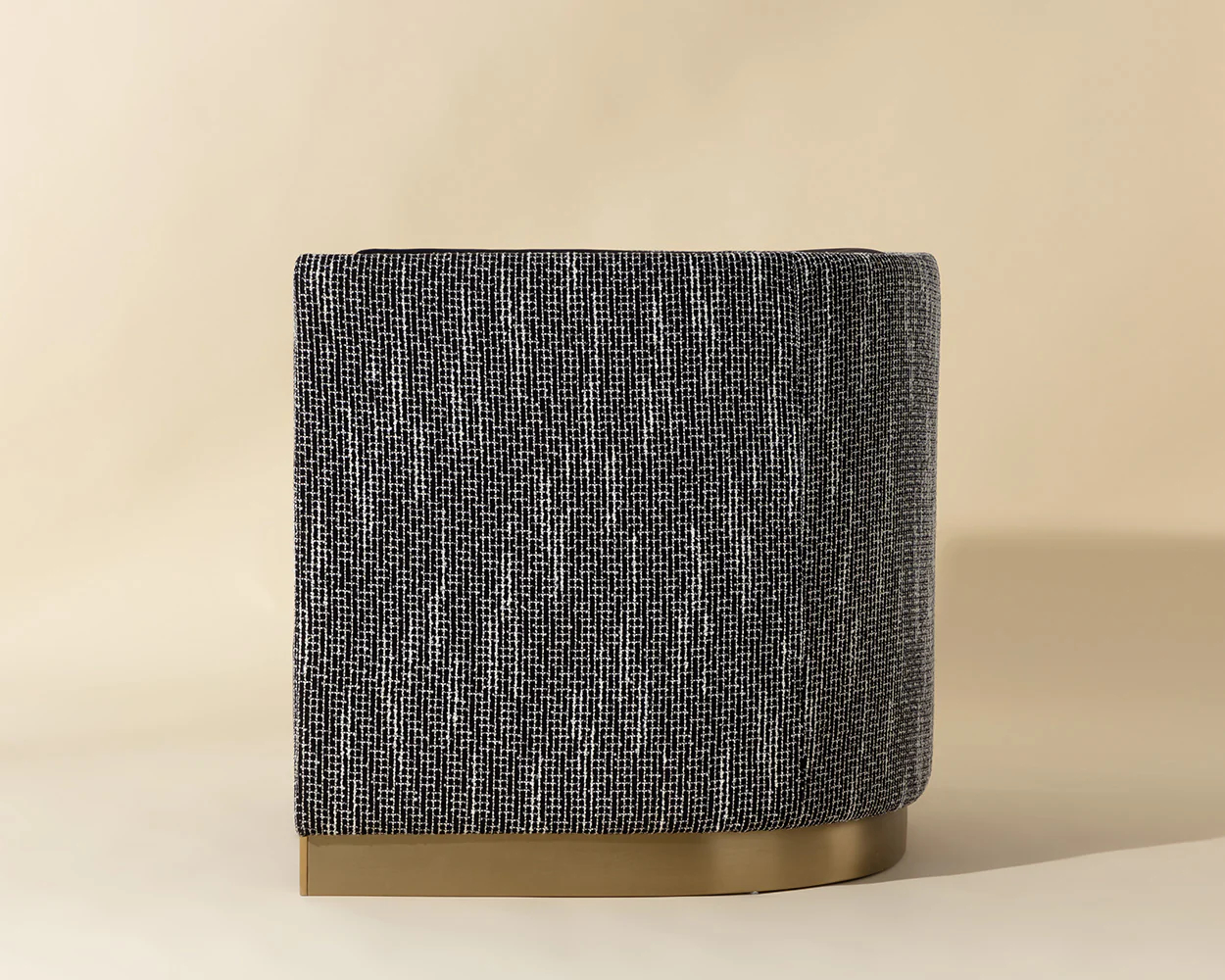 The Abbington Armchair balances mixed materials to bring this contemporary design to life. Expertly upholstered in a two-tone combination of Abbington black and Hobbes night fabrics for a mix of contrasting textures. Gold stainless steel metal inlay and padded curves accentuate the chair’s curved silhouette.