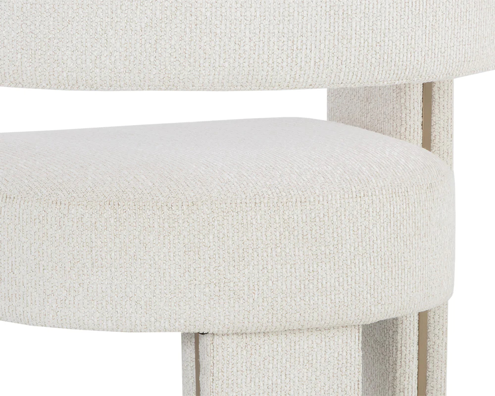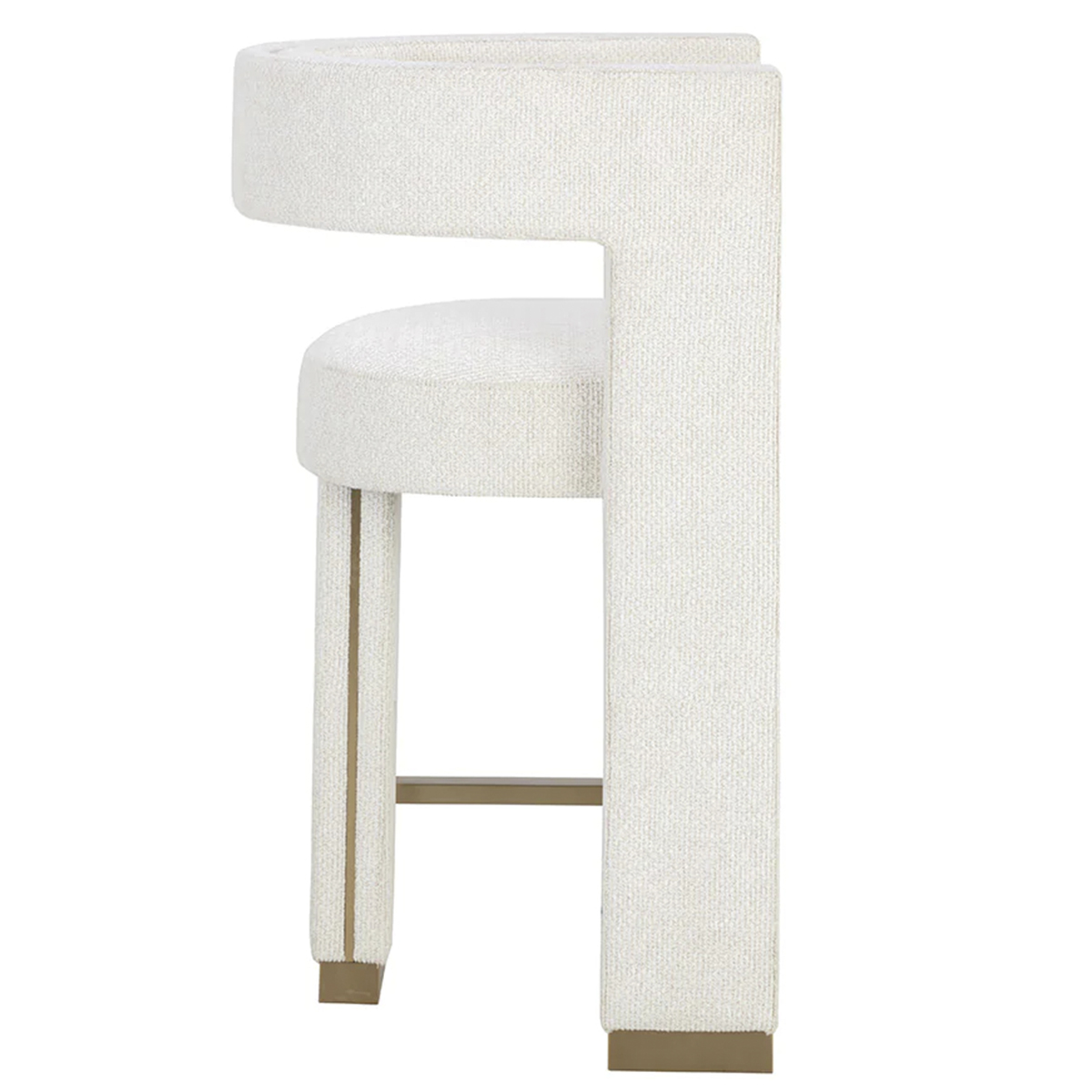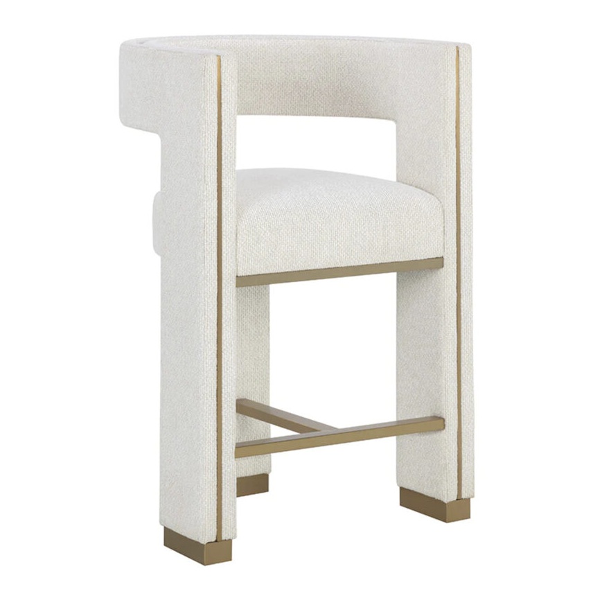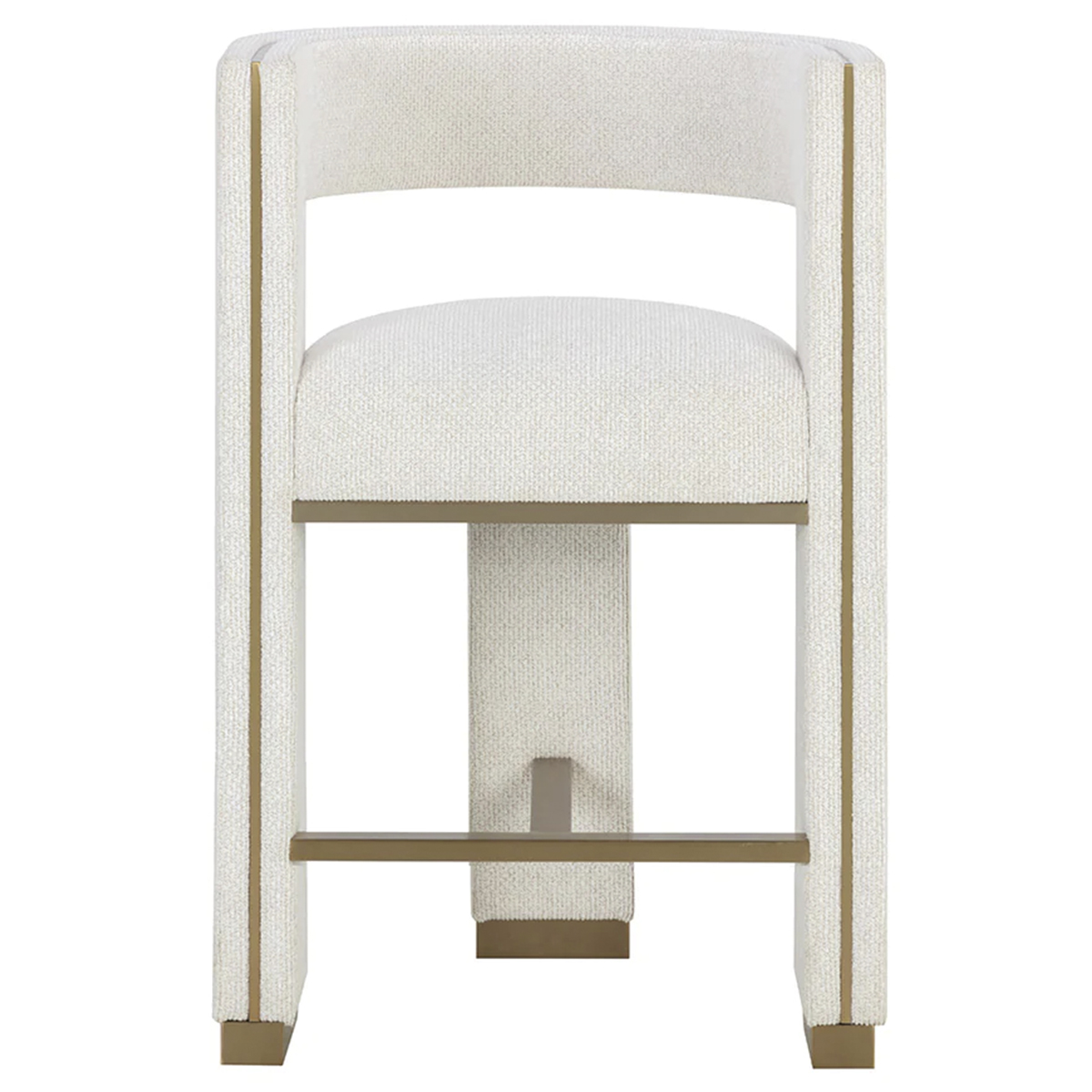 Perfectly poised with a distinct three-legged design, the Abbington counter stool will leave a lasting impression. Brushed gold metal detailing enhances the plush texture of our White linen weave performance fabric for a stylish seating solution.