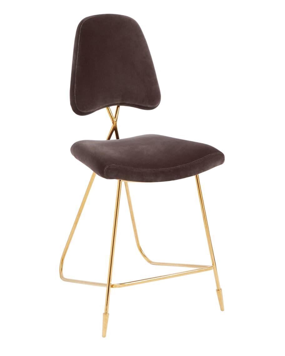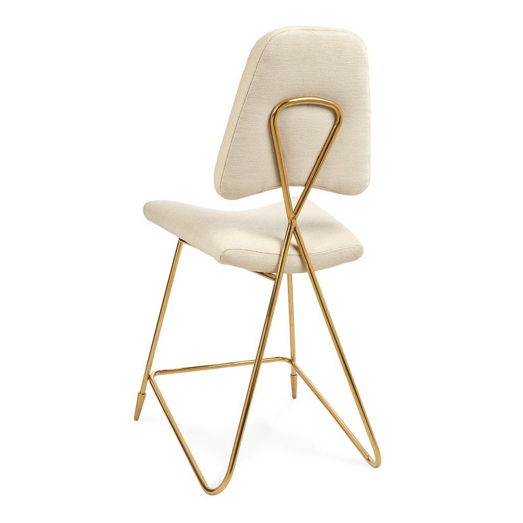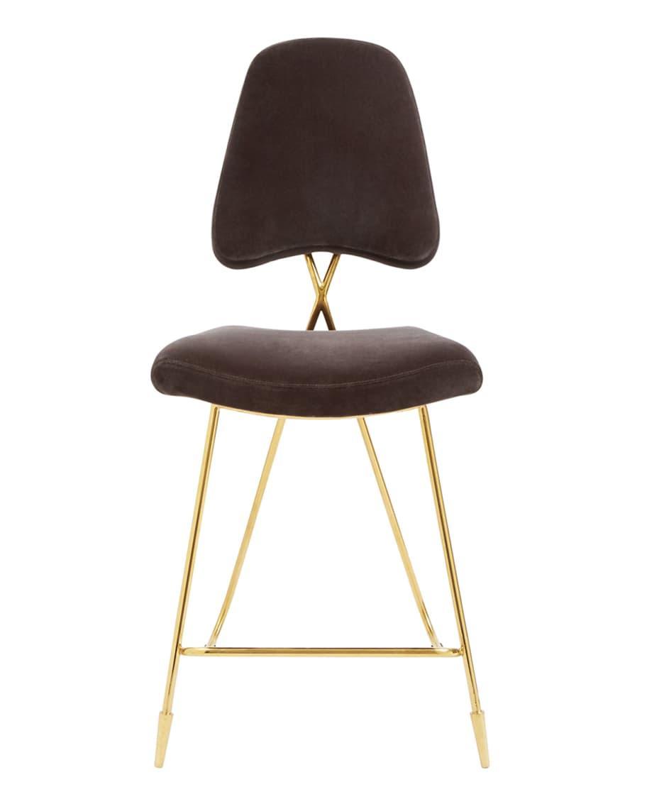 A gleaming gold frame with an intriguing crisscross back and our signature sabots cradles a softly curved seat and sculptural back. Don’t be fooled by the sinuous frame—our Adler Counter Stool is très comfy, and gives any elevated table space an elegant edge. Finished in fresh and neutral cre velvet, it’s light and airy but with powerful presence.