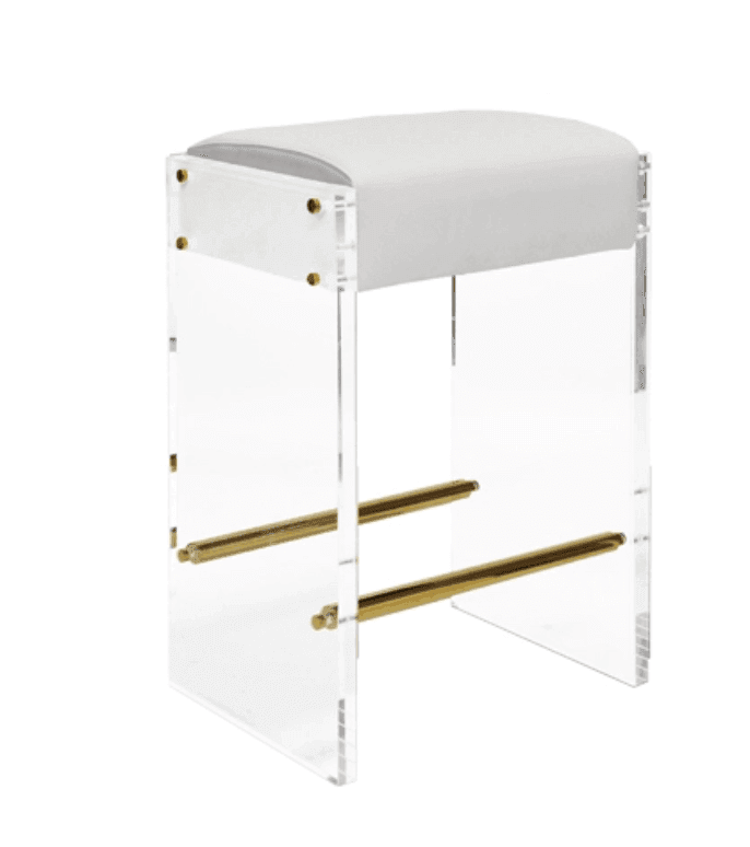 Alchemy Light Grey Velvet Lucite Brass Barstool