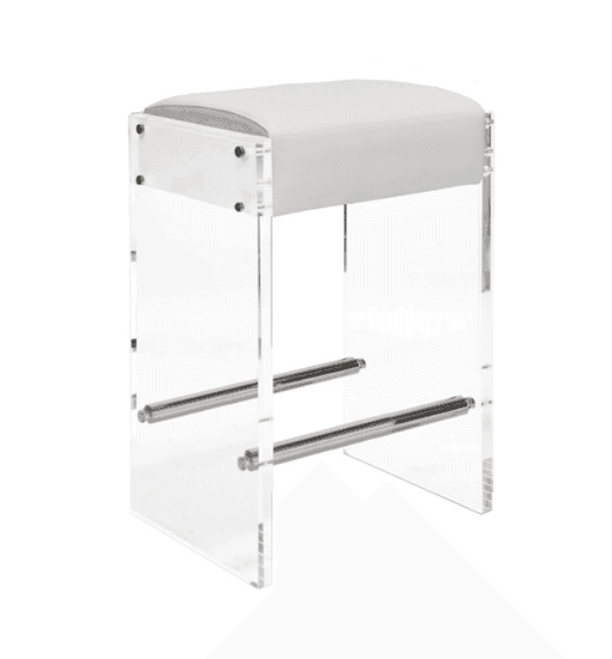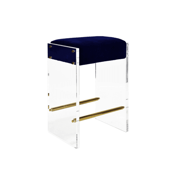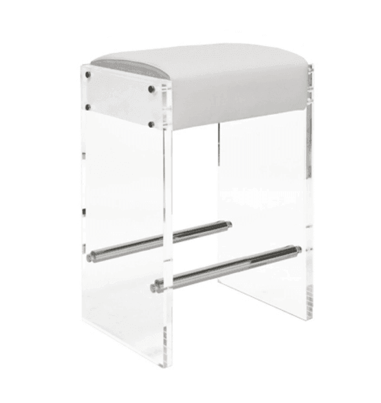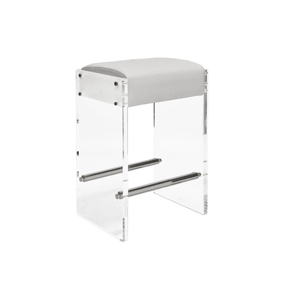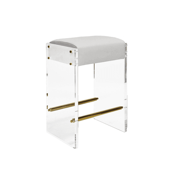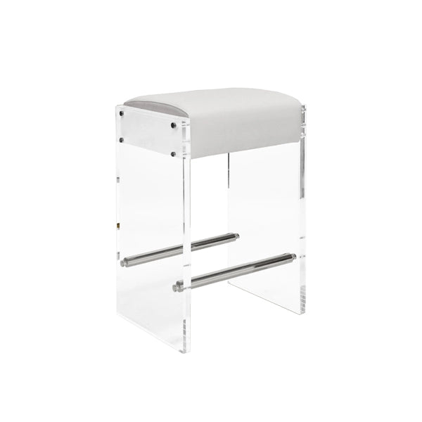 ACRYLIC PANEL COUNTER STOOL WITH NICKEL ACCENTS & LIGHT GREY VELVET CUSHION