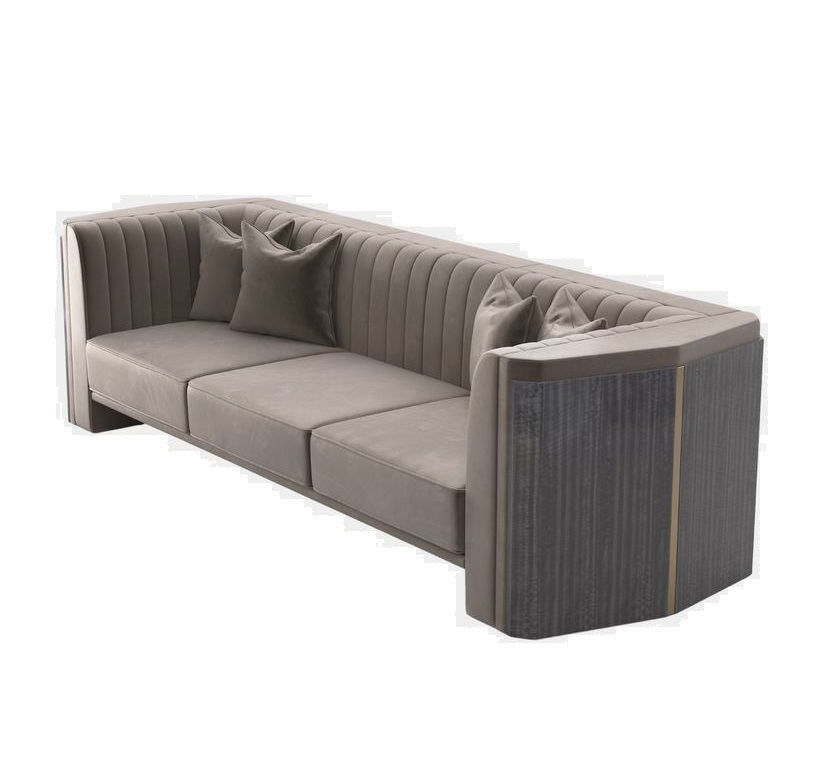 Algerone Grey Velvet Eucalyptus Frise veneer Brass Sofa