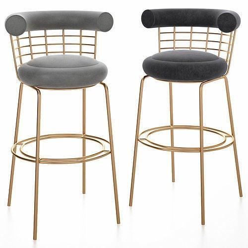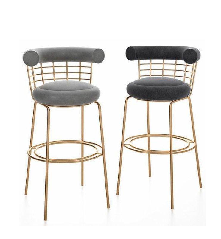 Allure Grey Velvet Brushed Gold Counter Stool