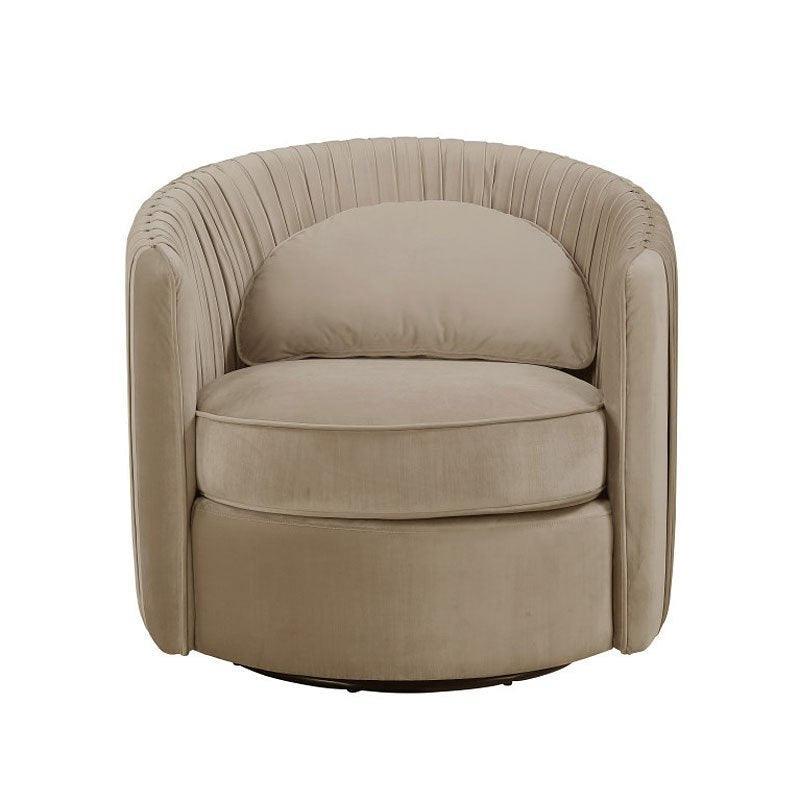 Allure Sand Velvet Pleated Swivel Armchair