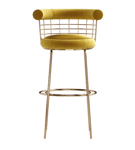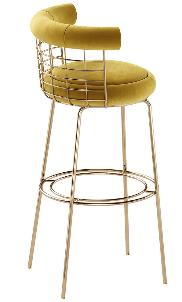 Allure Yellow Velvet Brushed Gold Counter Stool
