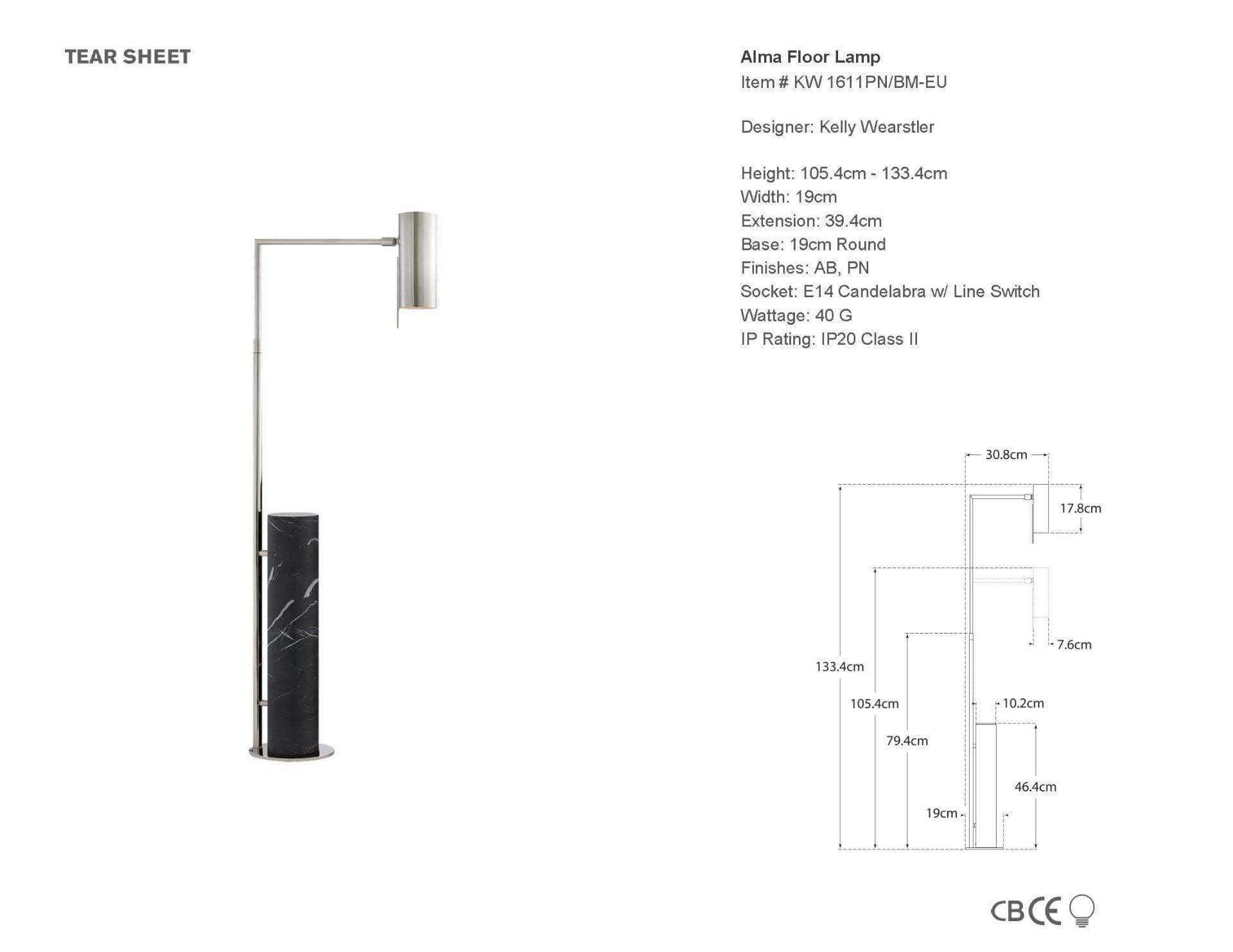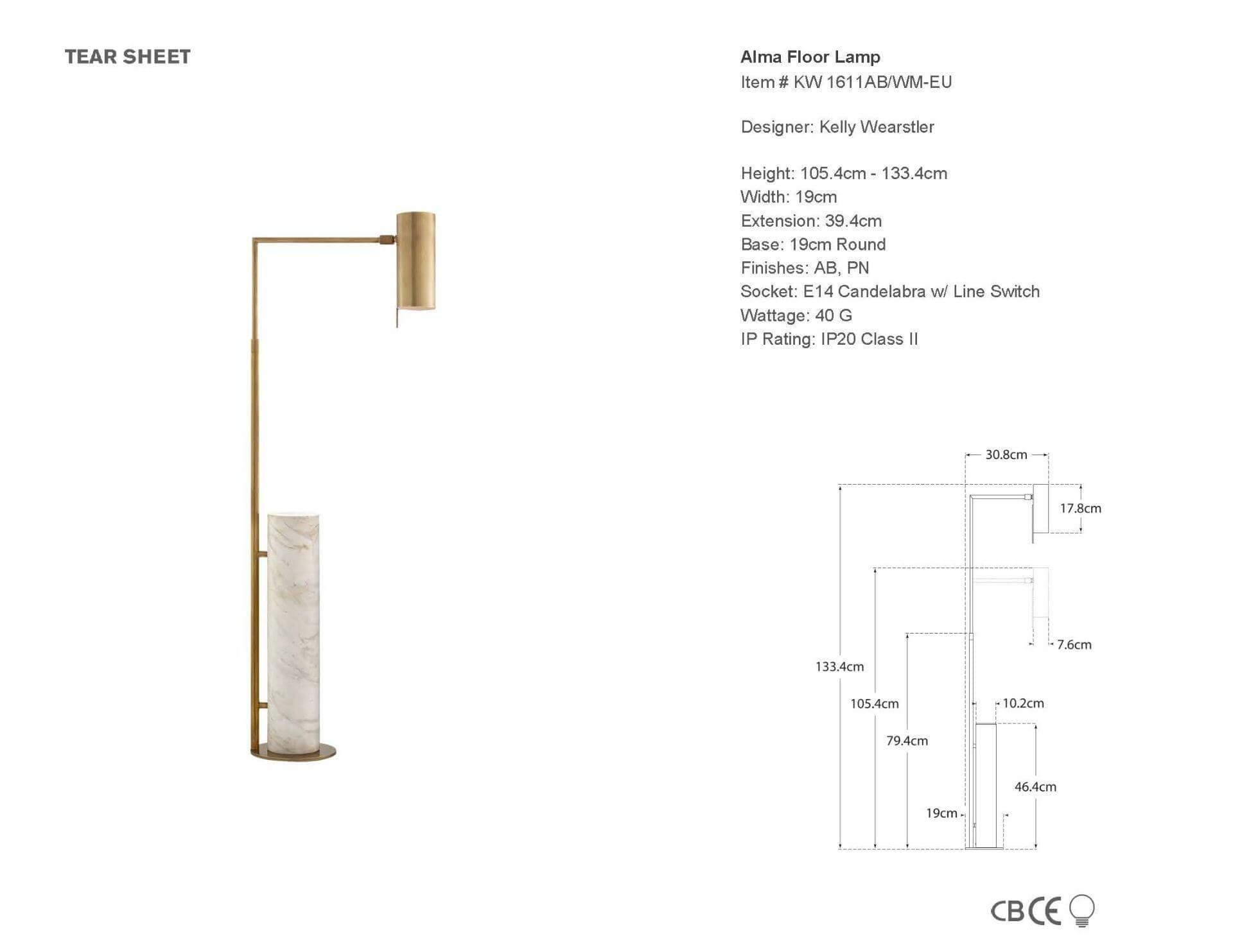 Alma Calcutta Oro Marble Polished Brass adjustable Floor Lamp 160cm