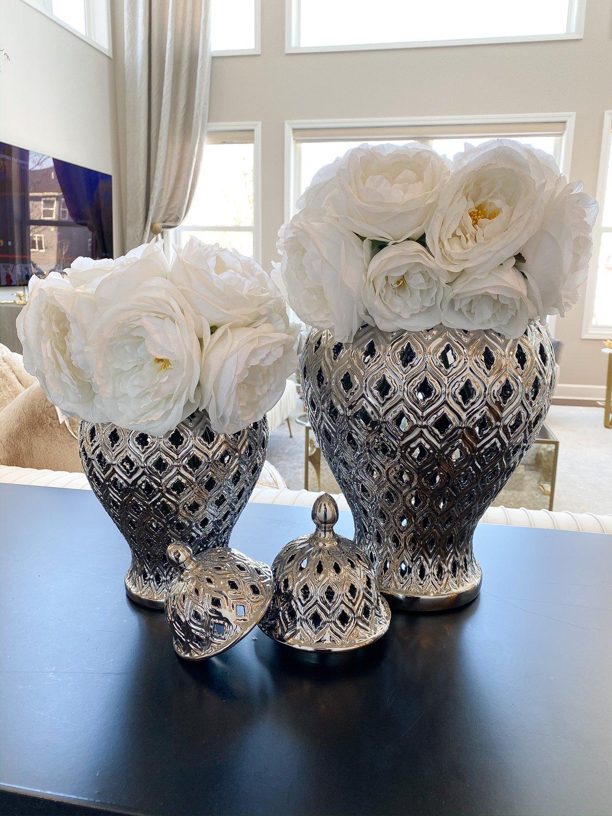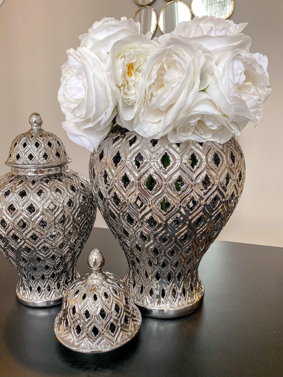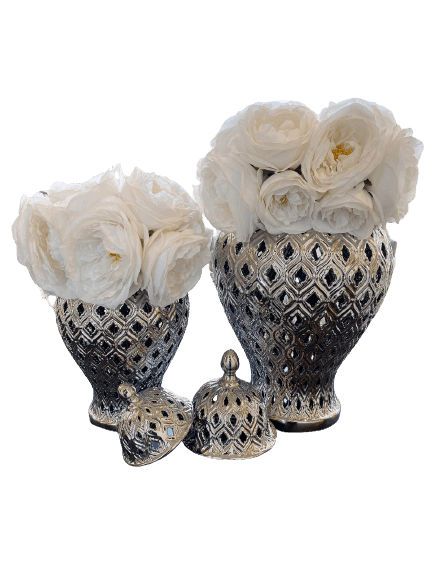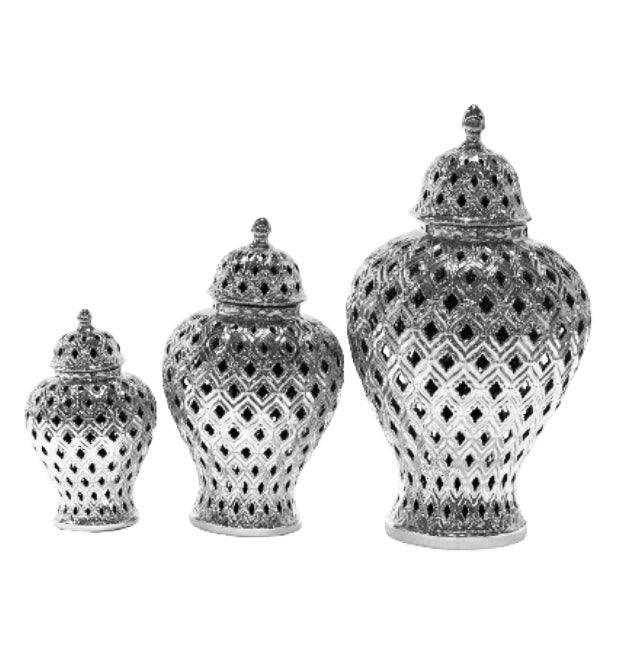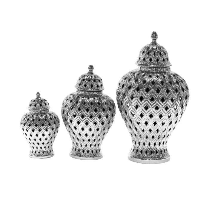 Peacock Silver Temple Jar Vase Set