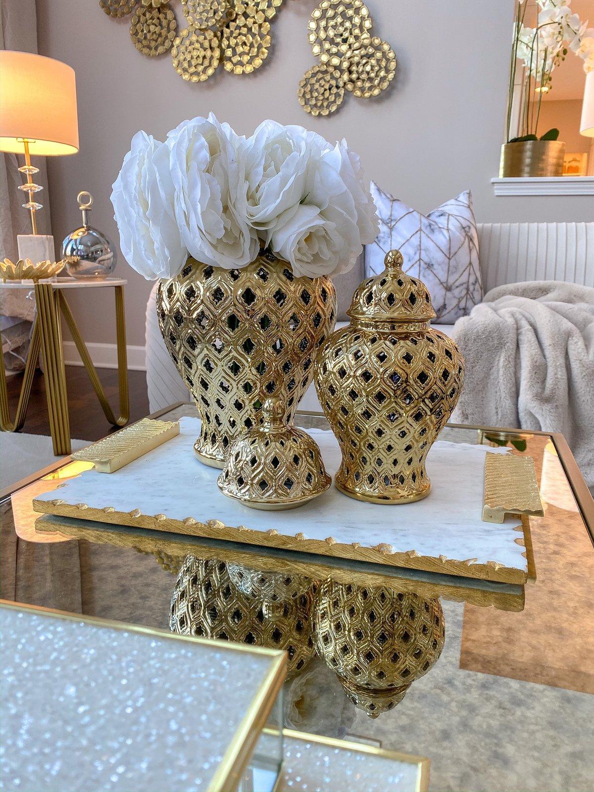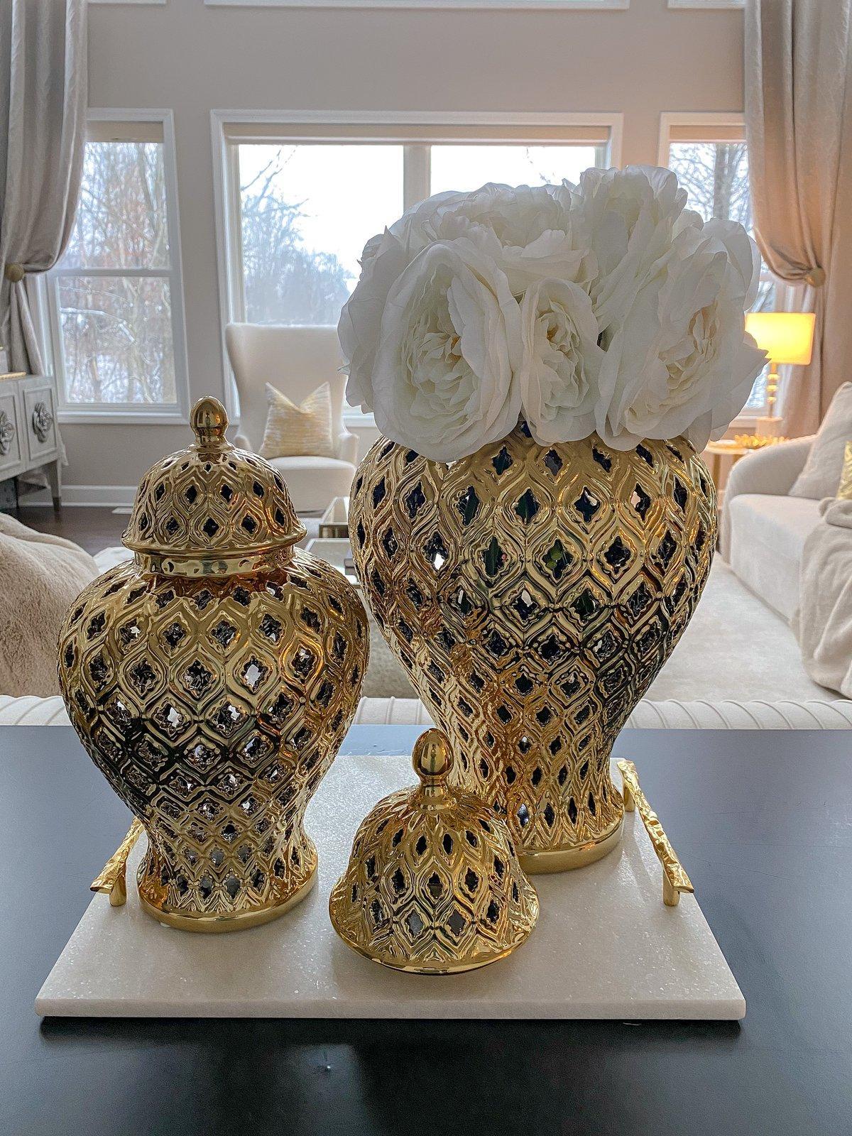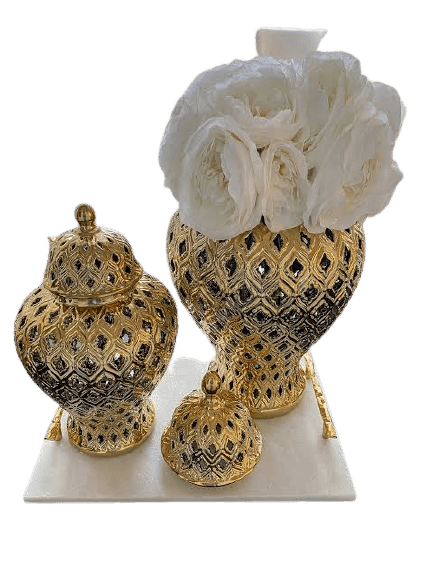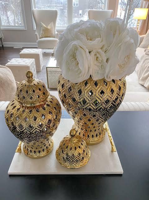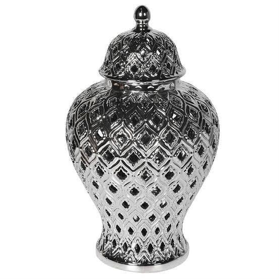 Peacock Silver Temple Jar Vase Set
