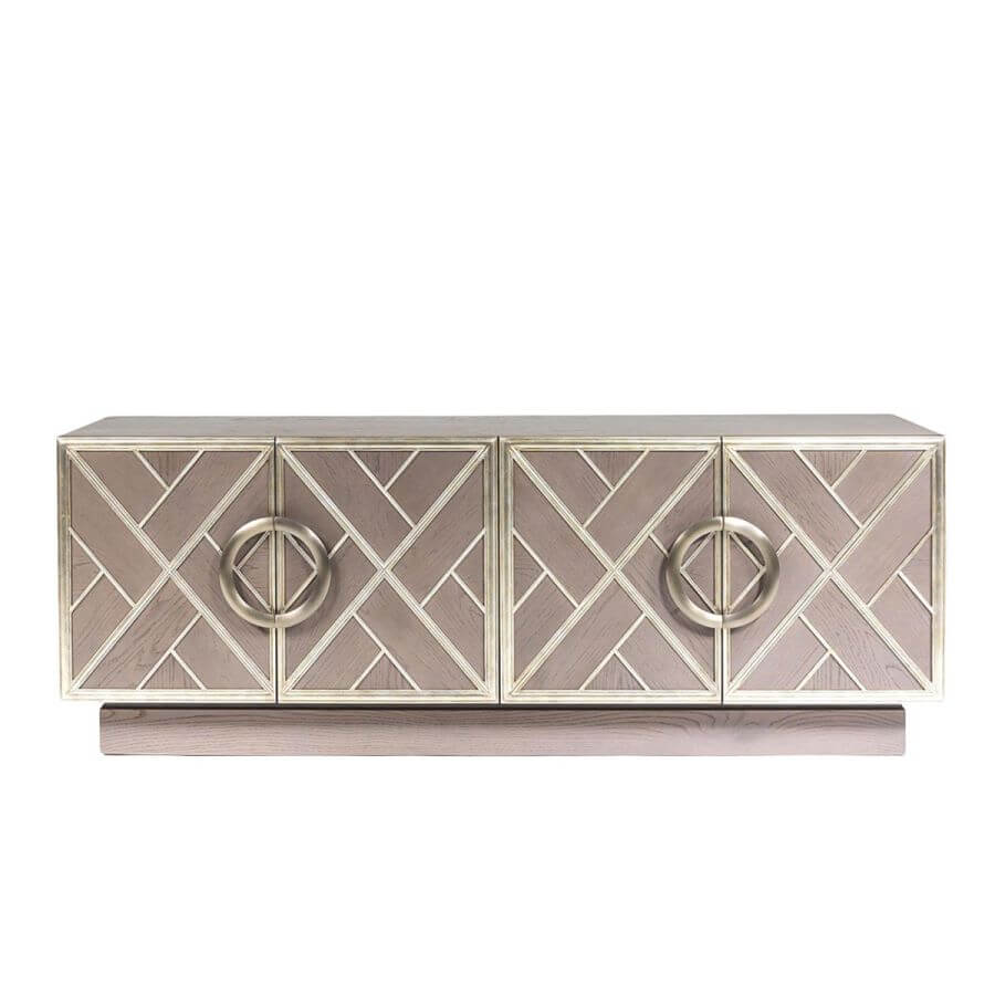 the Amherst fret-facade pieces will look equally stylish in today’s city flat or suburban house. The burnished pewter-colored fretwork is akin to the fashionable English rococo furniture. This buffet is handcrafted with solid oak in Light Natural oak finish. You will find ample storage with the 4 door storage with x 4 drawer storage.