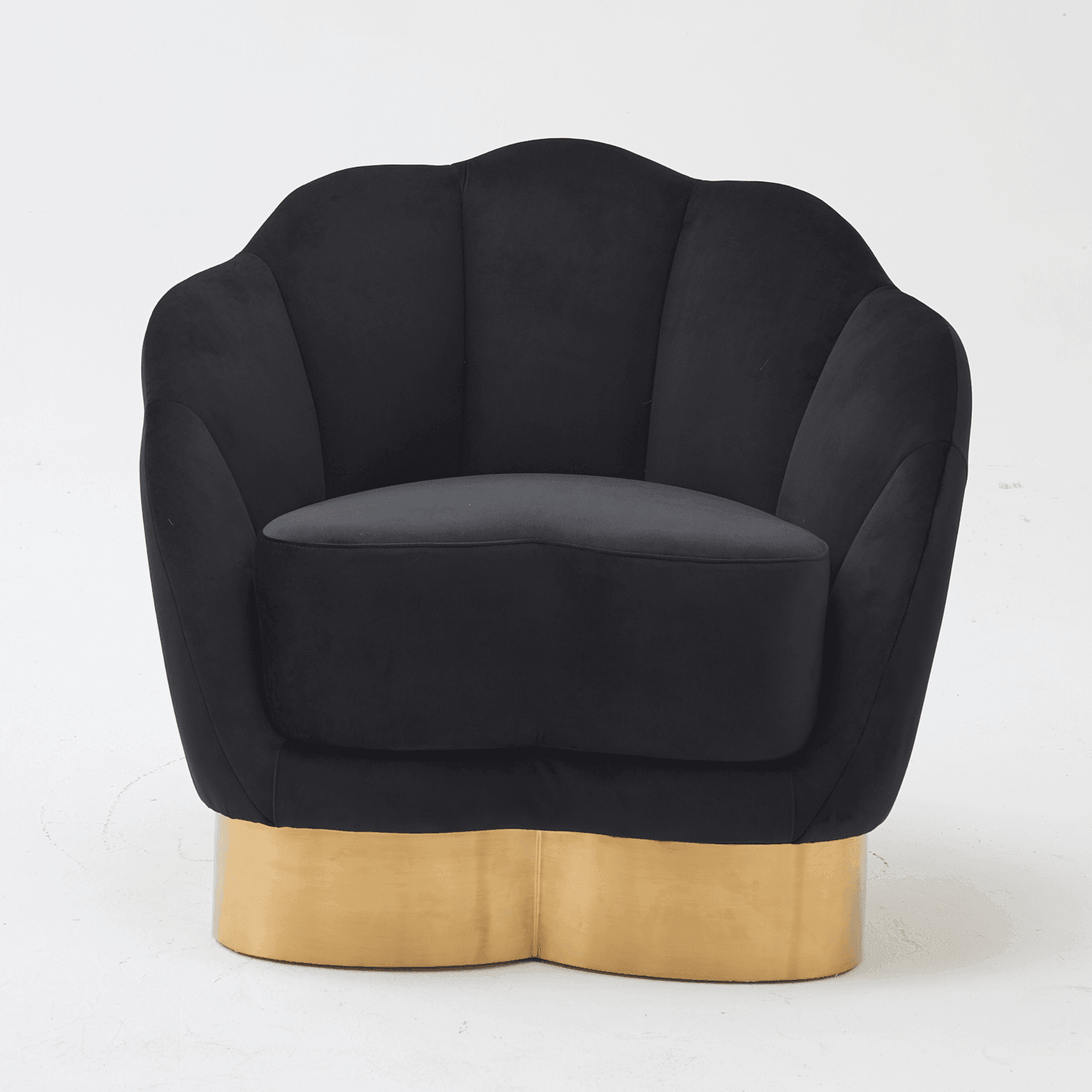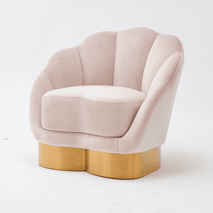 Beautiful Shell design chair with Premium Upholstery Velvet fabric. Ultra thick cushioning and polished brass base.