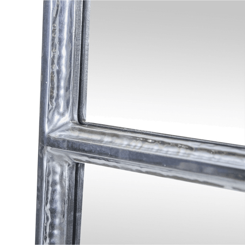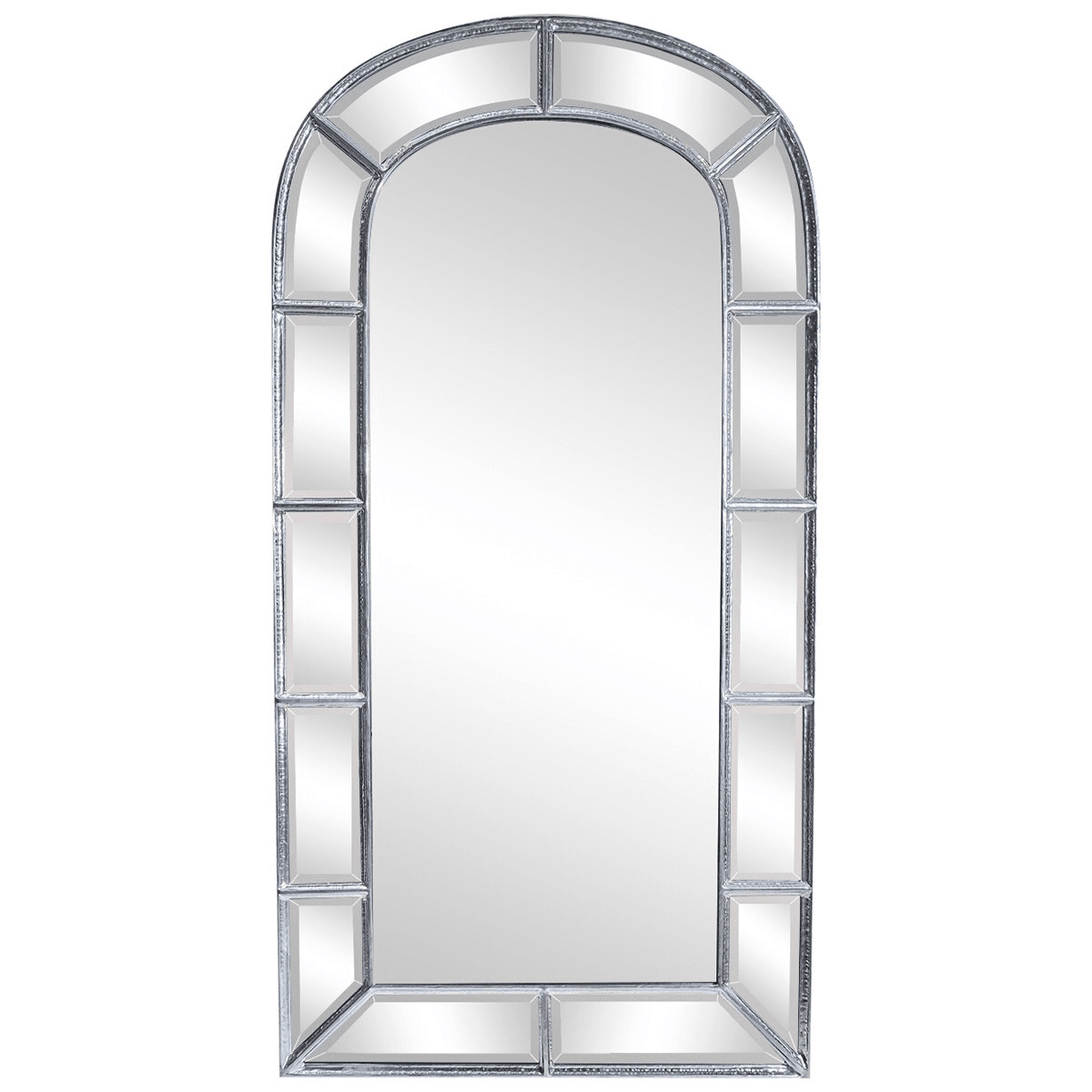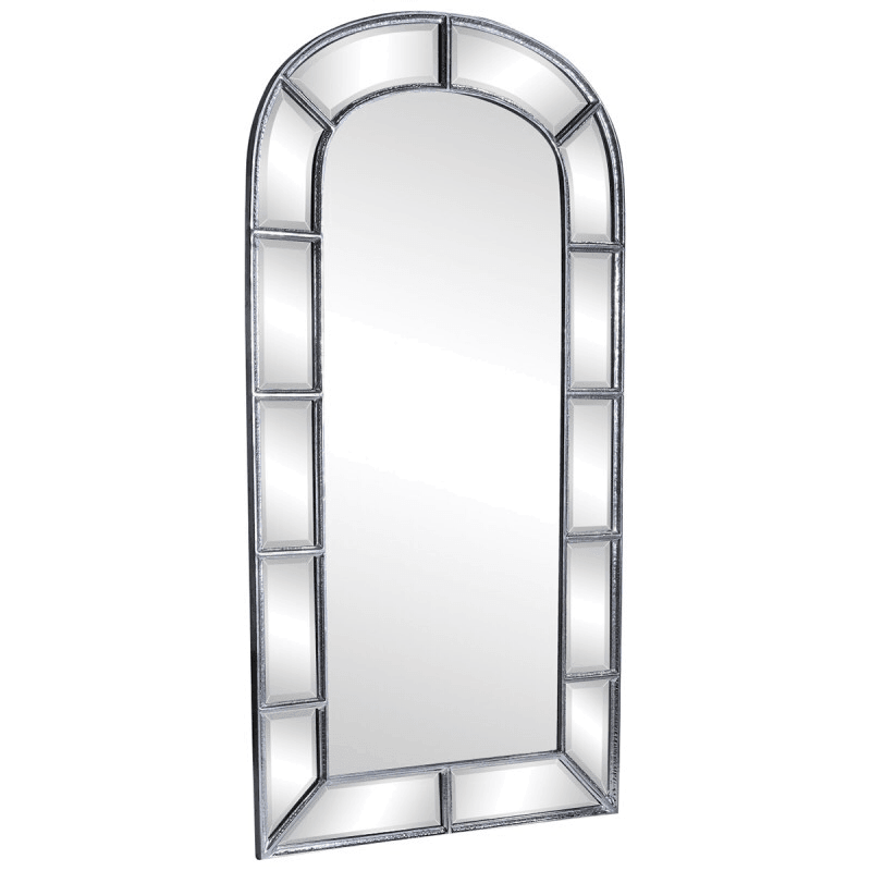 Arc De Triomphe Polished Antique nickel Floor Mirror. Organically shaped, this floor mirror is constructed of a beautifully hand beaten nickel frame in a classic polished antique nickel finish and features inlaid bevelled mirror in the frame.