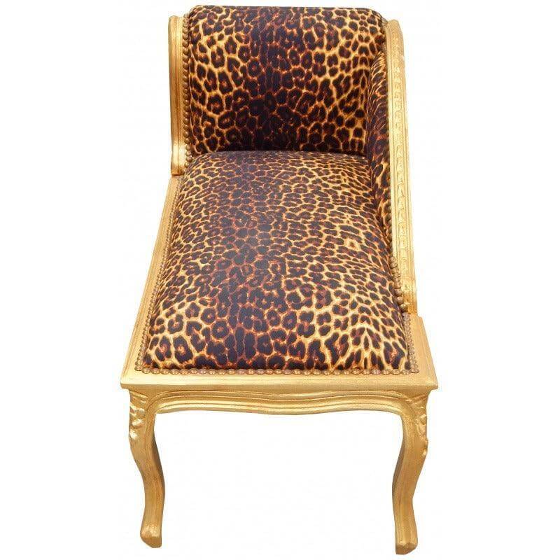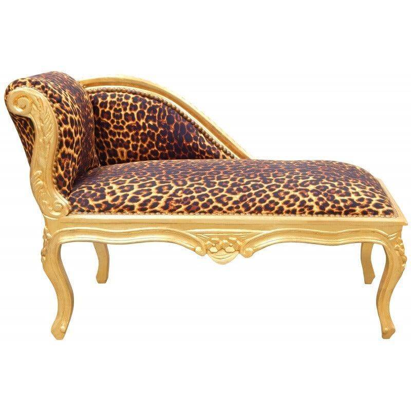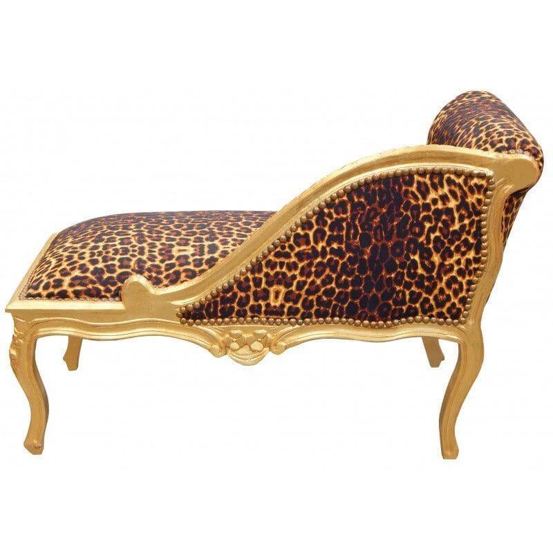 Fabulous baroque Louis XV style chaise longue has a beautiful leopard printed fabric with a fantastic comfort. The frame is gold colour made with leaf. The seat is very comfortable and soft and the wood is finely hand carved with patterns taking style. Perfect for a refined interior. Subject truly sublime!