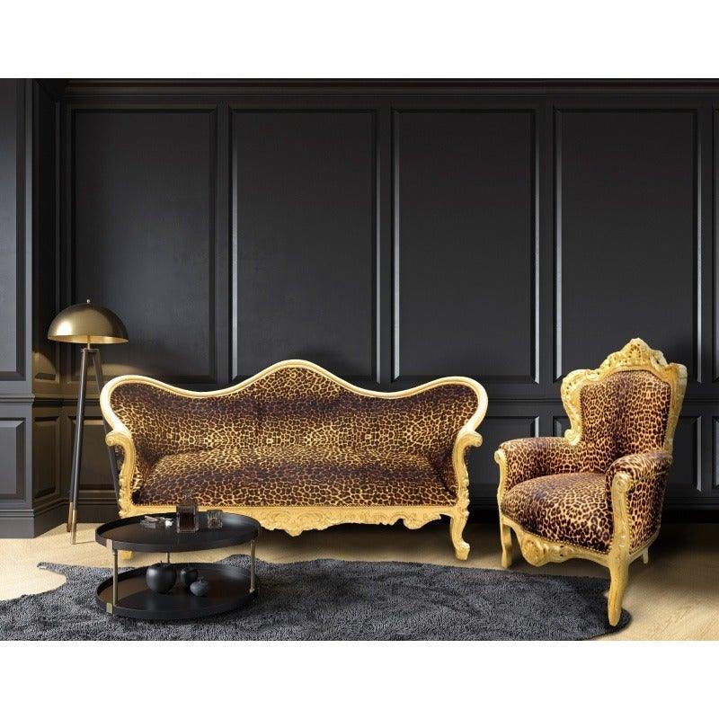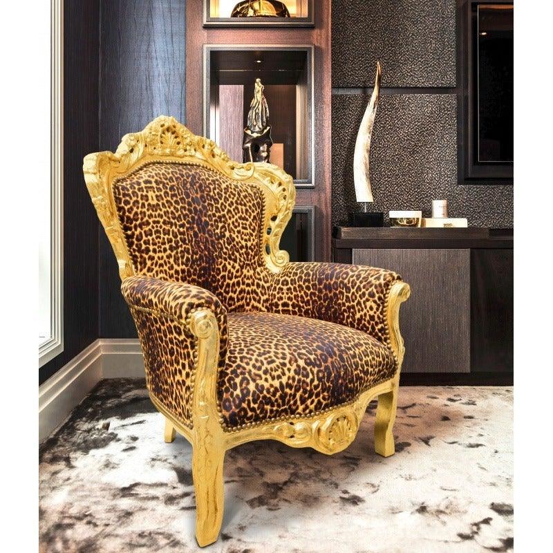 This sumptuous and very big baroque armchair “royal” has a beautiful leopard cotton fabric with a perfect comfort.