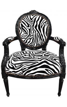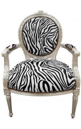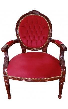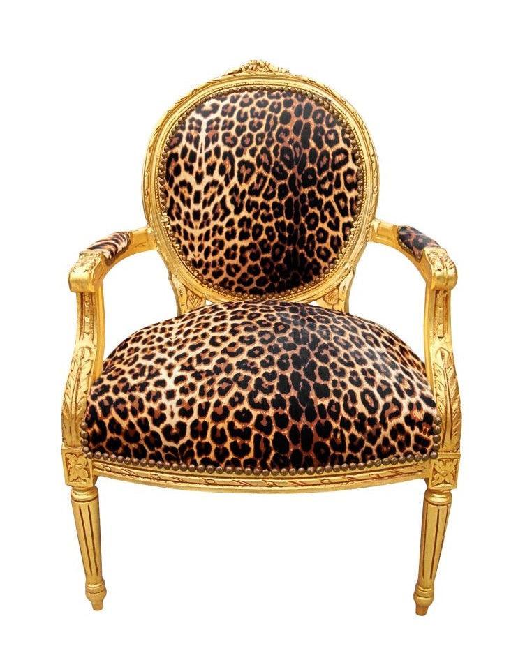 This sumptuous baroque Louis XVI-style armchair upholstered medallion has a beautiful leopard fabric in velvet or cotton for a perfect comfort. The fabric is nailed to the frame and wood color is mahogany.