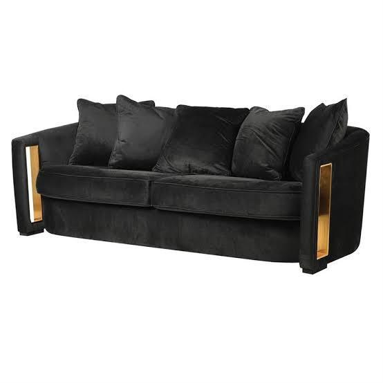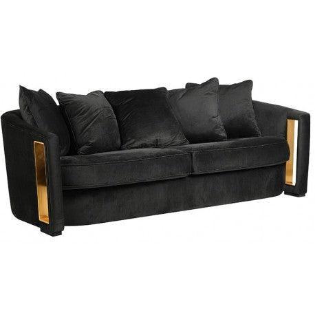 Archie Black Velvet Brass Sofa