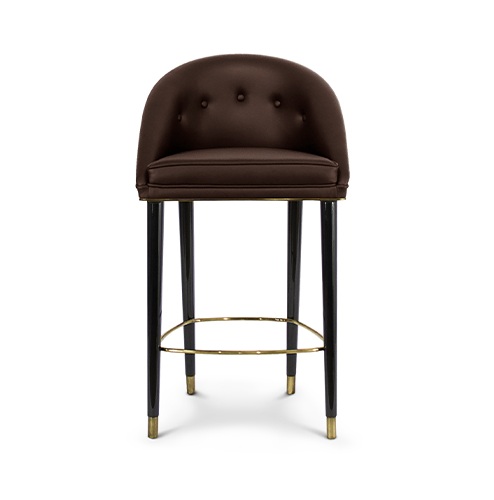 Arden Brown Leather Brass Counter Stool. Classic design made glam, this bar stool is a perfectly eye-catching addition to your oh-so-chic kitchen island or home bar.