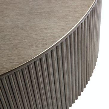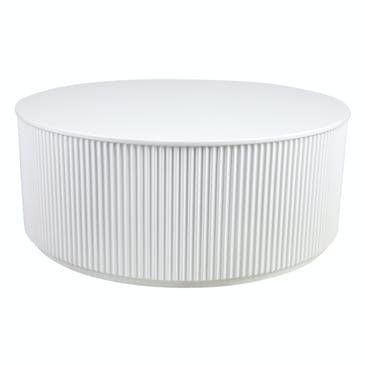 The Arielle White Coffee Table 90cm brings together organic rounded surfaces with linear patterns, the Arielle table delivers a natural aesthetic to a contemporary design. A gentle antique white finish provides a delicate visual that enriches its textured face. Pair this white coffee table with matching side table at opposing ends of a sofa for a more dramatic effect or in your bedroom for a sleek and streamlined finish. Alternatively arrange on its own as an adaptable living room piece to suit your everyday needs.