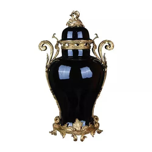 • Armando Black Ceramic Gold Temple Vase 67.5cm