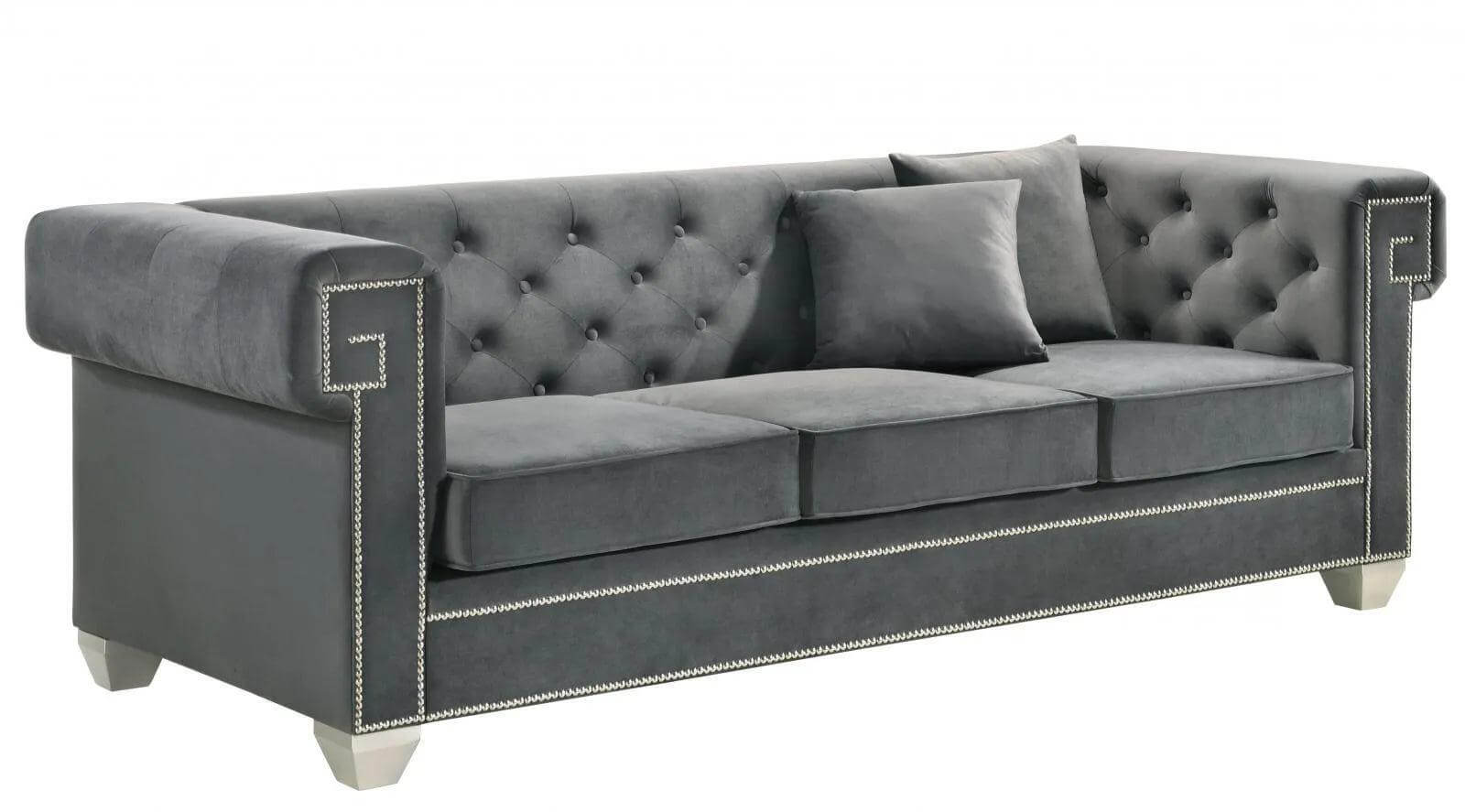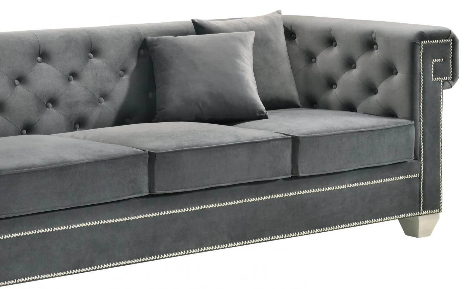 Artemis Grey Velvet Studded Sofa