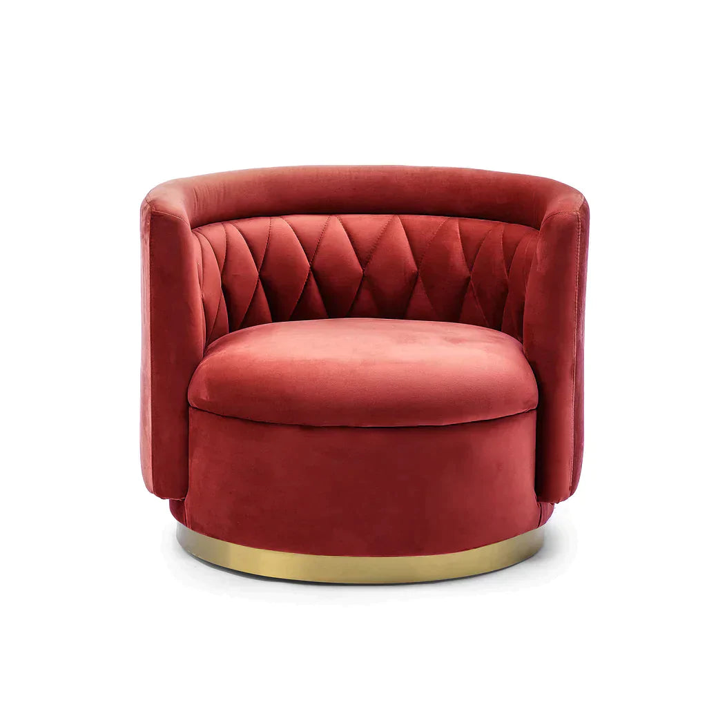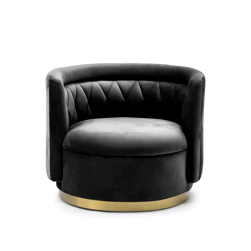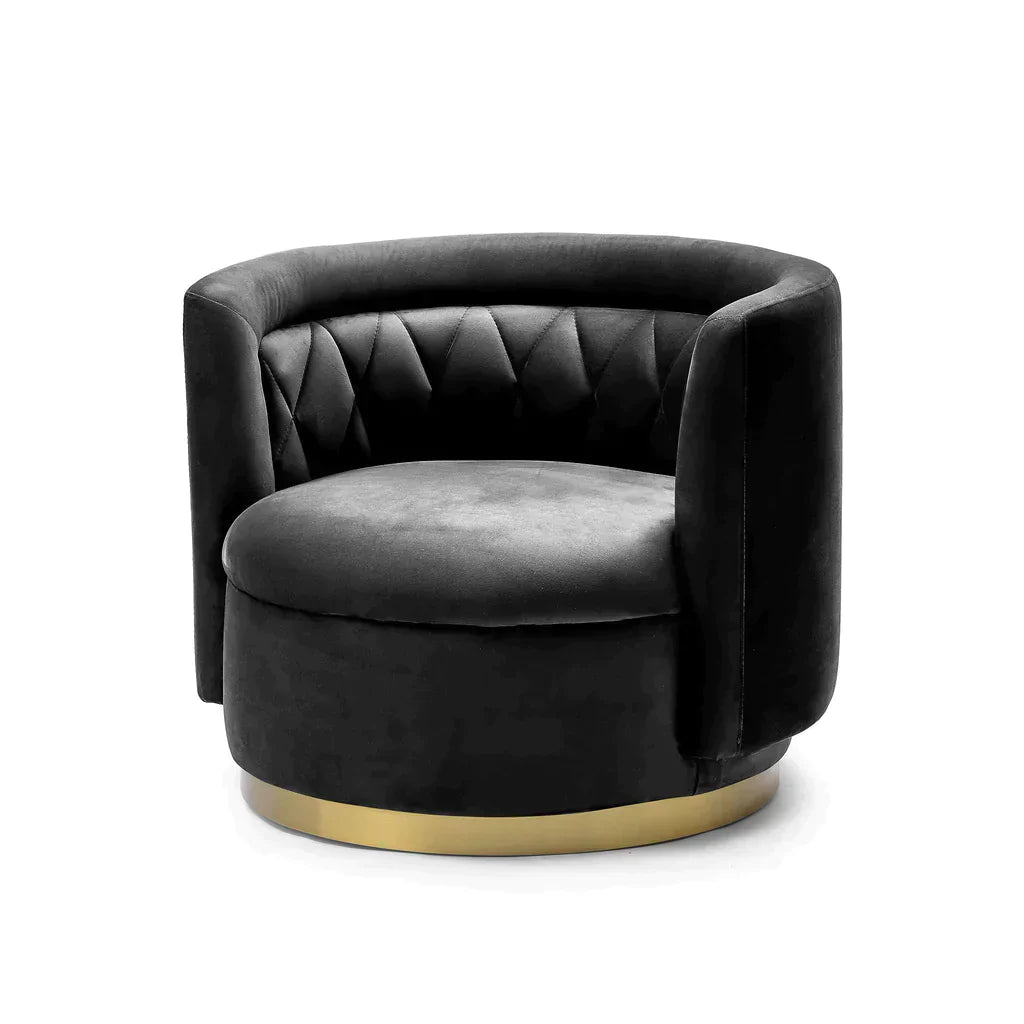 • Ashton Dark Green Velvet Gold Swivel Armchair
