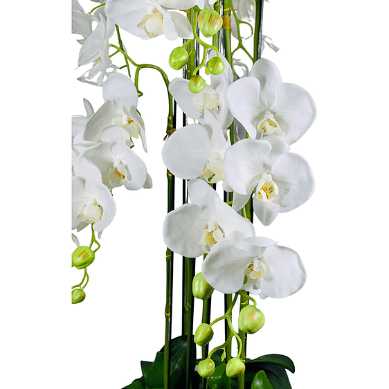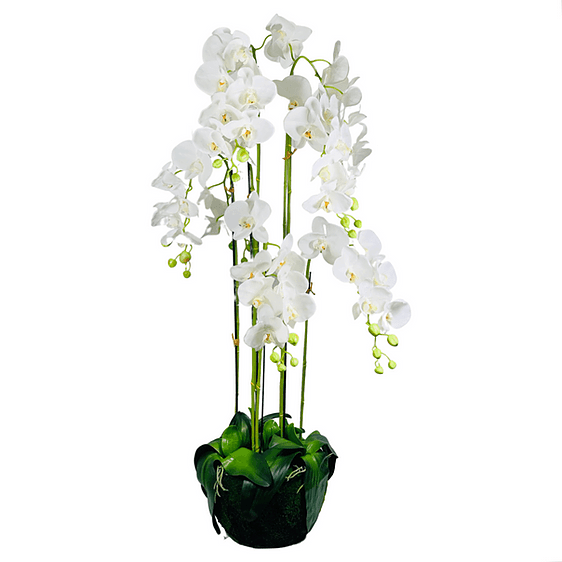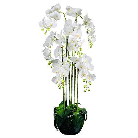 Atelier White Phalaenopsis Orchid with Foliage 150cm. Our Orchids are an exquisite addition to any room bringing life to any space around the house. Add to any planter or pot for instant orchid centerpiece. Ready to pot in our exquisite planters