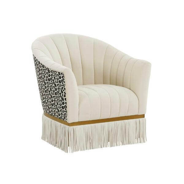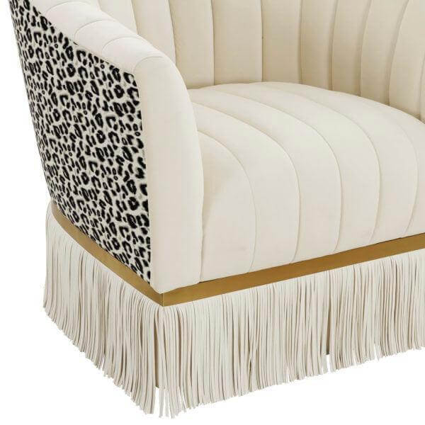 Audenza Cream Velvet Leopard Fringe Armchair