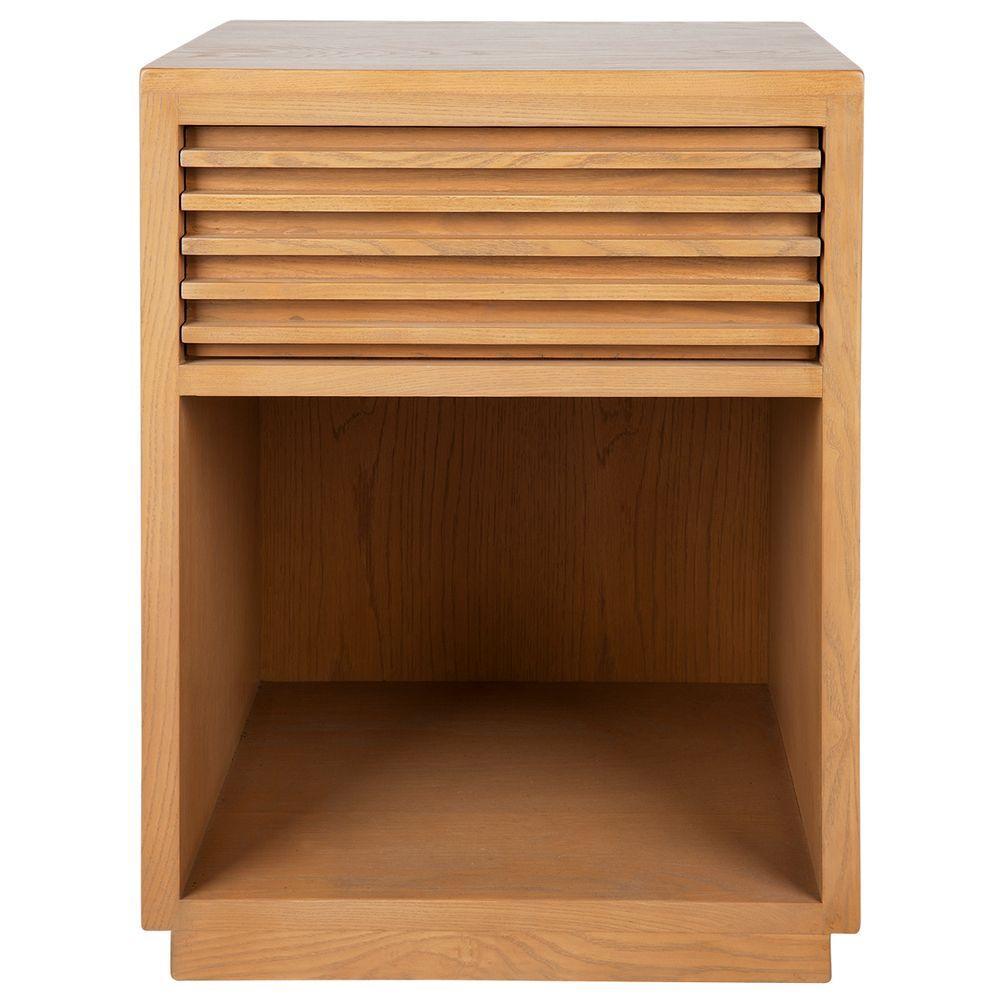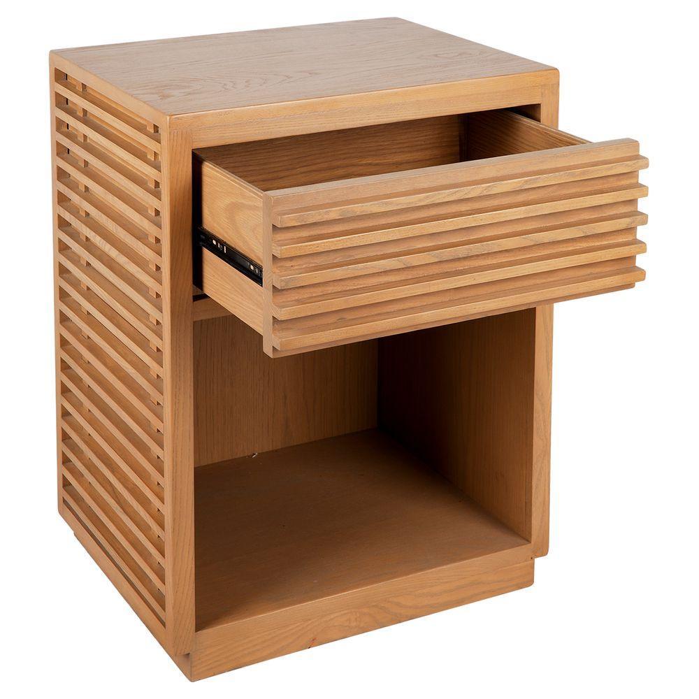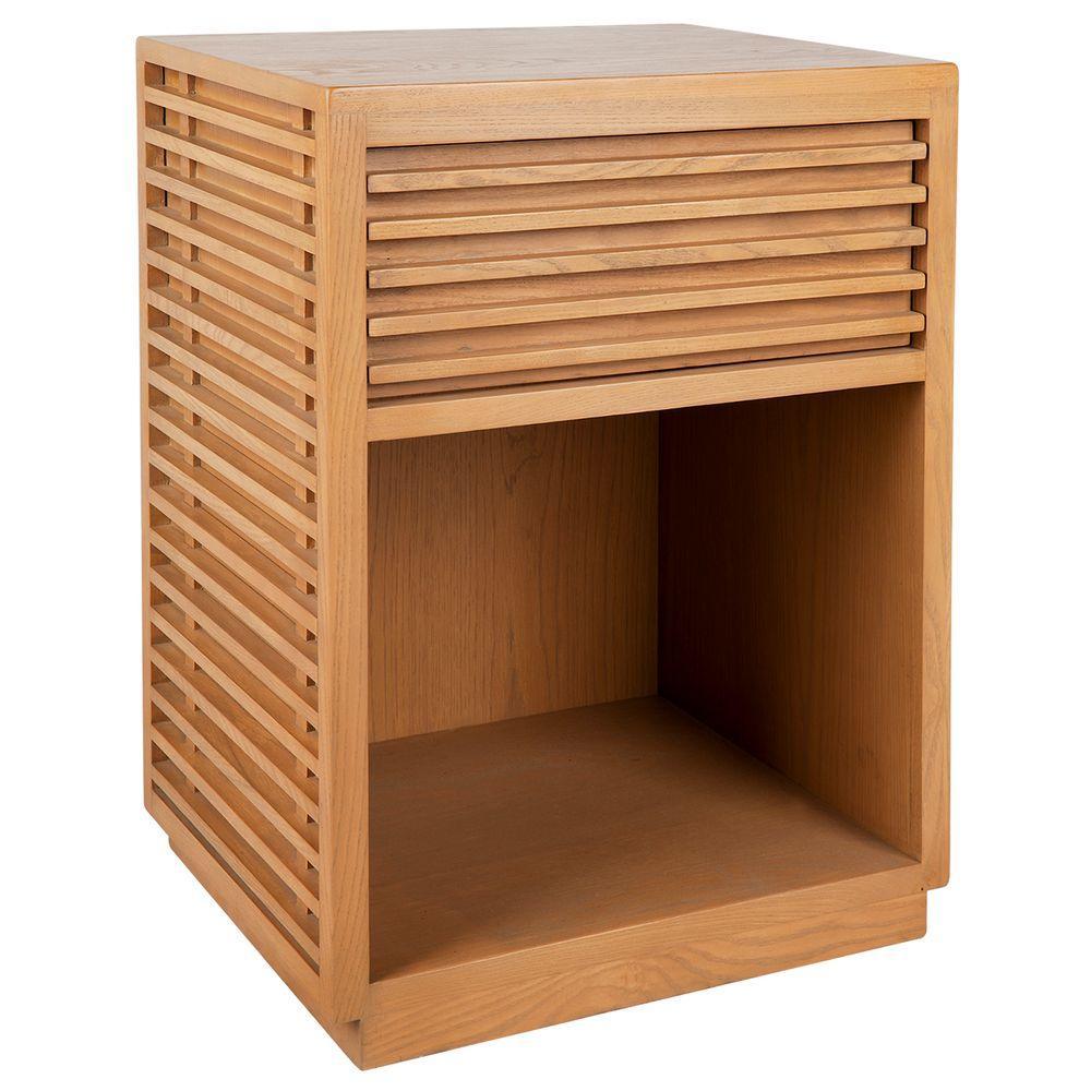 Echoing the warmth of nature, the Bahama bedside table in natural finish is constructed from solid oak and features striking oak timber grain with slatted timber detailing across its front and sides – creating a distinctively handsome look. Its perfect proportions and strong structural lines work beautifully with a variety of interior styles including contemporary, modern Australian, Scandi and coastal – adding visual interest, depth and texture. Featuring a single draw on black metal runners, the simplicity of the Bahama oak bedside table lends itself to use as a living room side table as much as a feature bedside. Also available in a white or black finish, the Bahama is a truly timeless furniture piece.