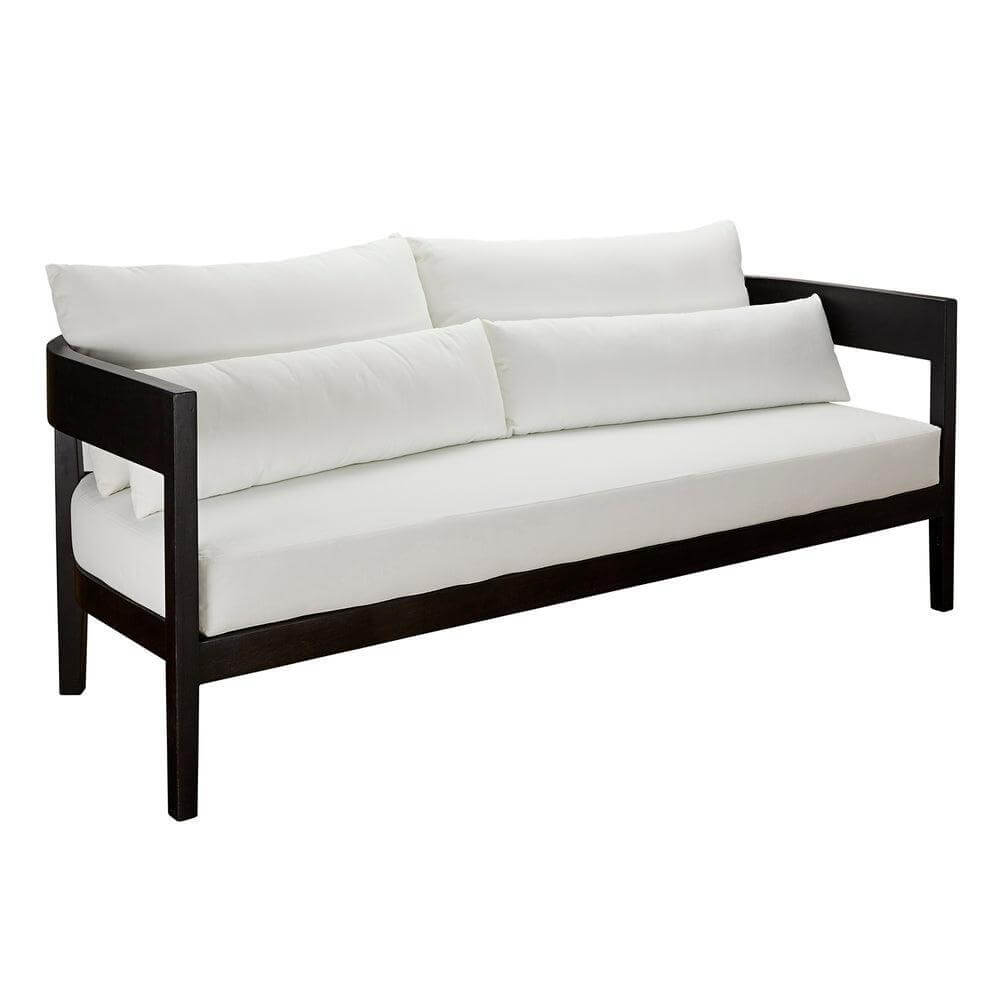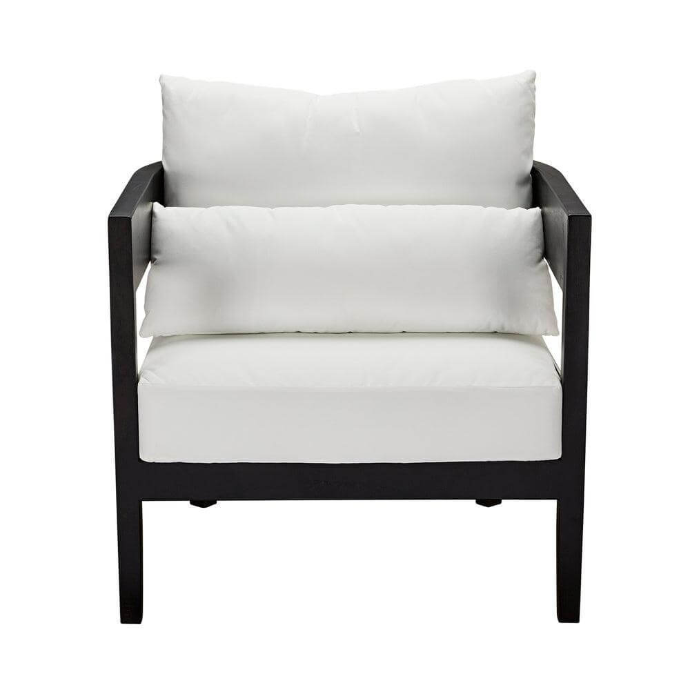 Reflecting a modern minimalist aesthetic the Balmain features gently curved profiles in black weather resistant teak supporting generous and comfortable cushioning. Please note that sofa is sold separately