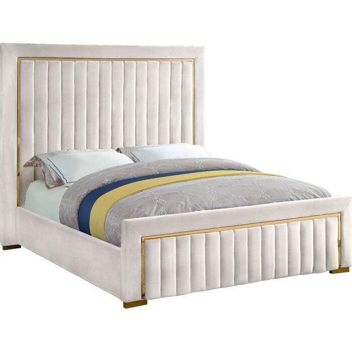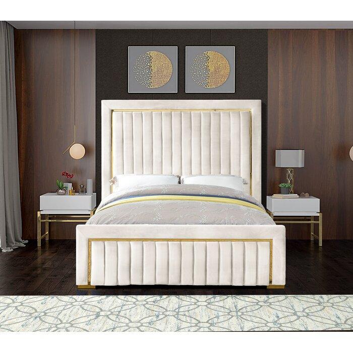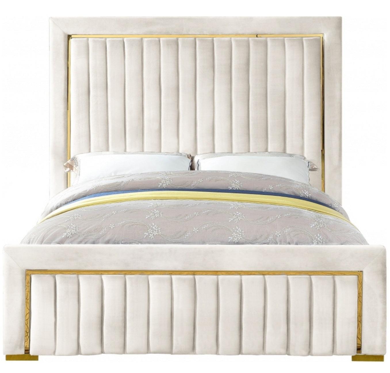 The BALMAIN COLLECTION from Avant Garde Furniture is a True renaissance of art deco style. This luxurious velvet upholstered design features plush oversized channel headboard in beautiful thick plush commercial velvet fabric with deep channel tufted design for added comfort. This stunning collection features bespoke polished gold metal hardware which exudes class into any space. The Balmain Collection features luxurious matching footboard design to enhance this Art deco Classic.