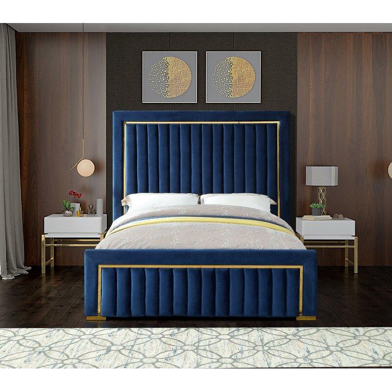 The BALMAIN COLLECTION from Avant Garde Furniture is a True renaissance of art deco style. This luxurious velvet upholstered design features plush oversized channel headboard in beautiful thick plush commercial velvet fabric with deep channel tufted design for added comfort. This stunning collection features bespoke polished gold metal hardware which exudes class into any space. The Balmain Collection features luxurious matching footboard design to enhance this Art deco Classic.