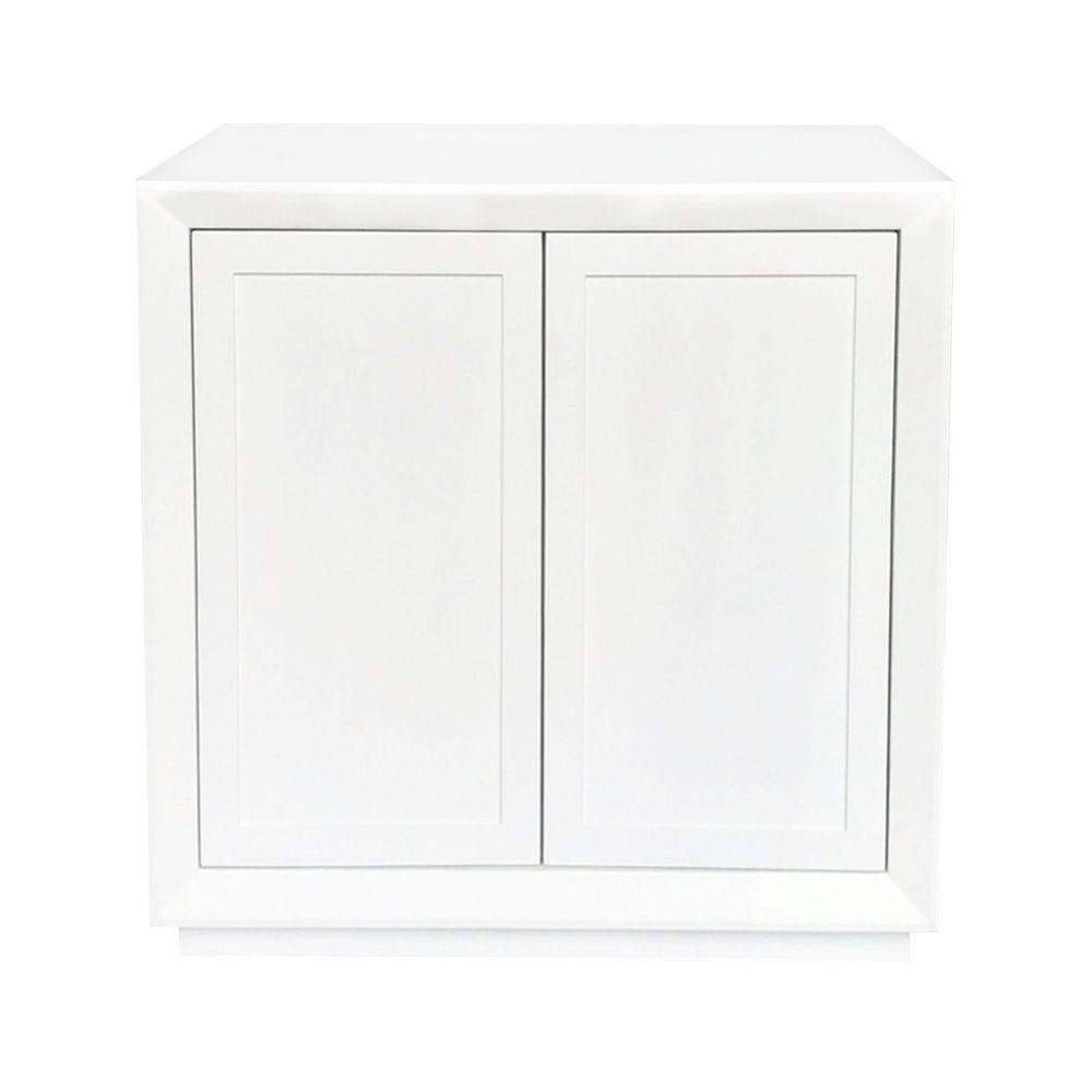 Balmain White Oak 2 Door Cabinet. For lovers of all things light and handsome, Balmain white hits the spot. The Balmain drinks cabinet brings a handsome sophistication to your space with classic shaker panelling in a painted oak veneer finish. The timeless design of the Balmain furniture range sits comfortably within a contemporary or classically styled environment offering true versatility. The clean firm lines of these furniture pieces are tempered by the subtle shaker panel and bevelled frame detailing.