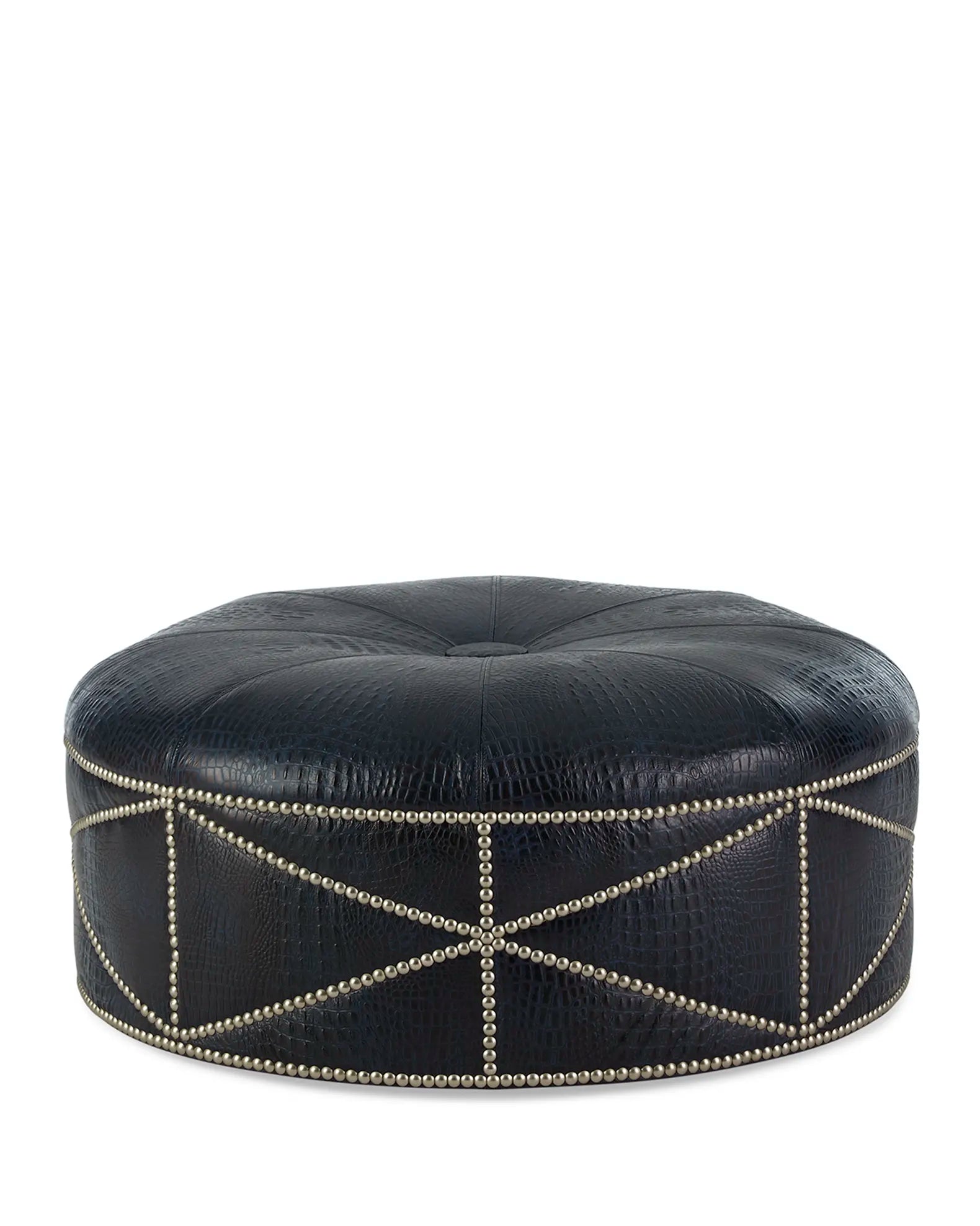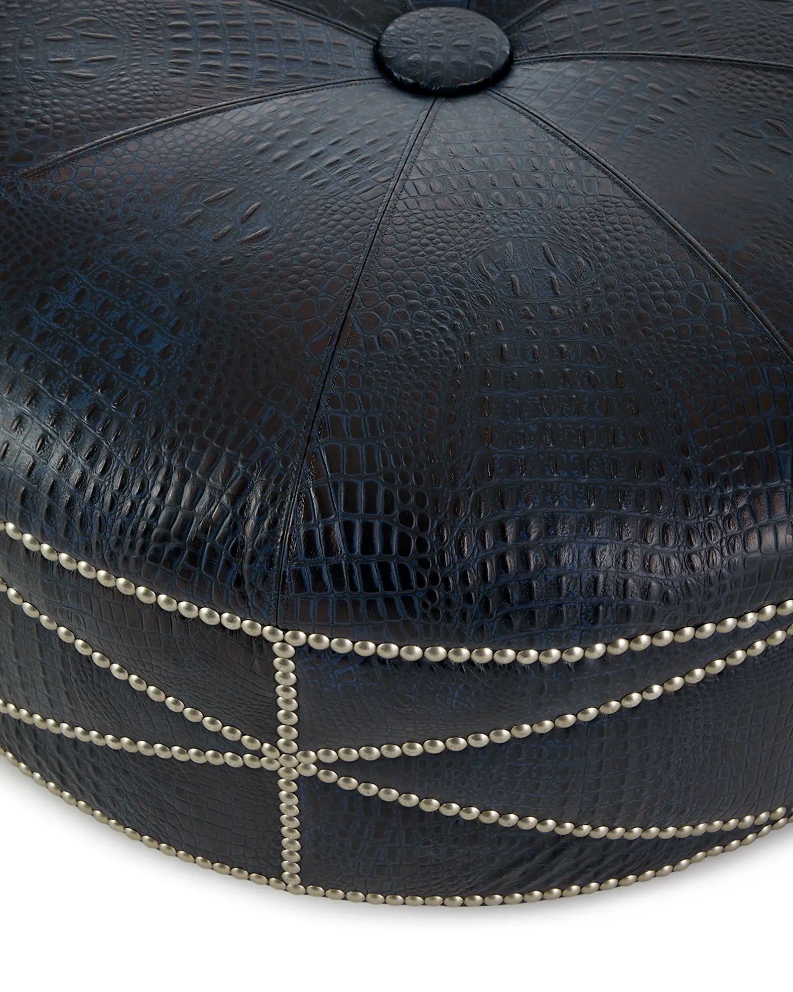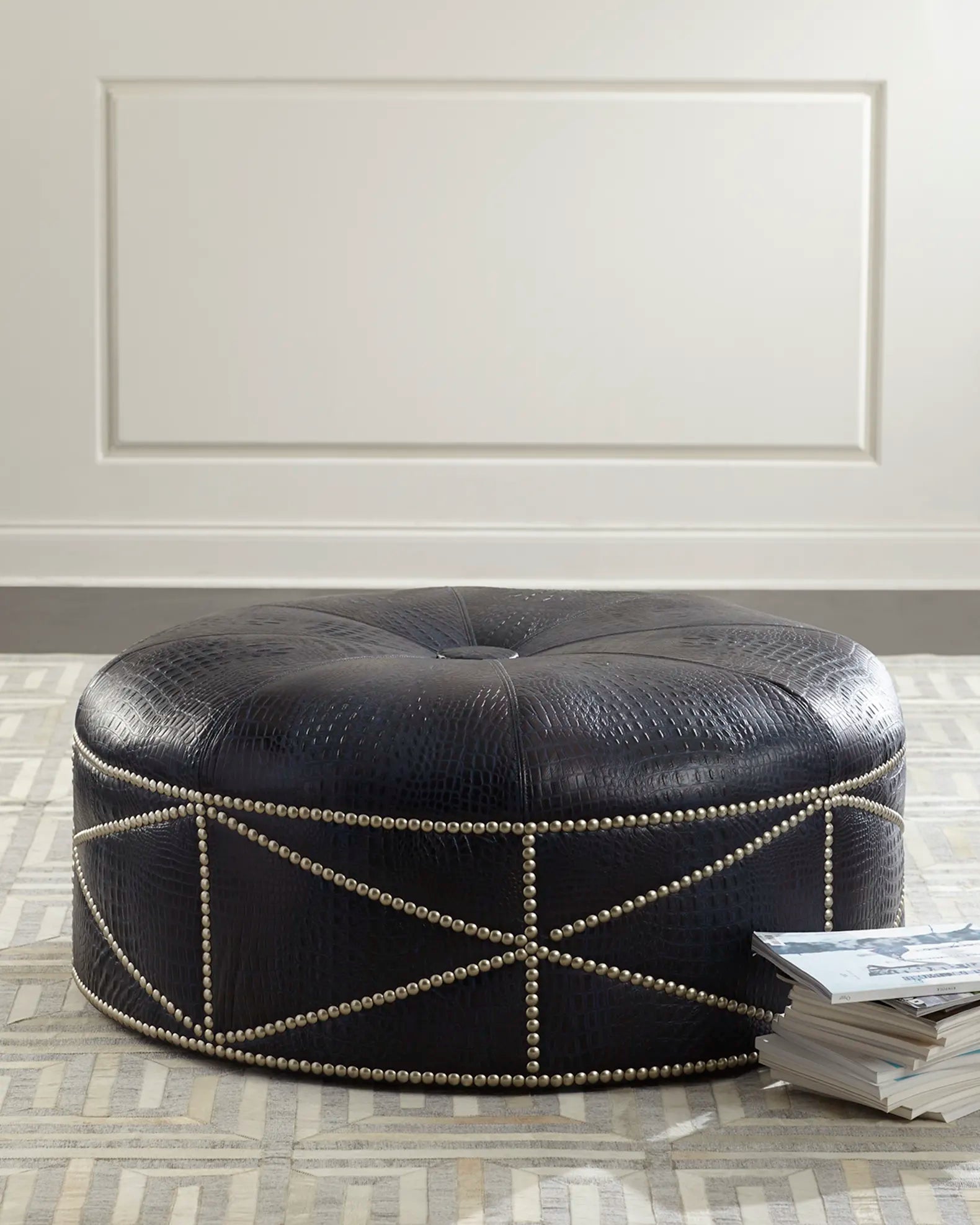 • Bandini Black Crocodile Leather Nickel Studded Ottoman 120cm