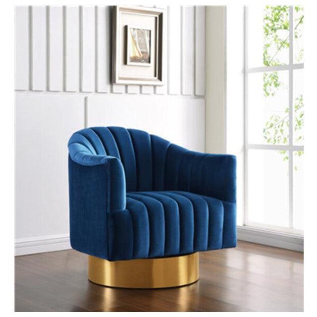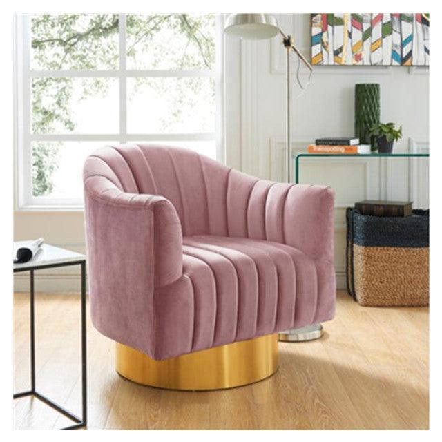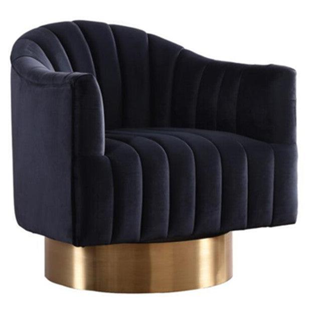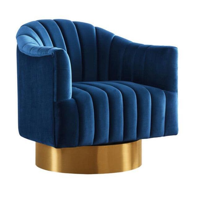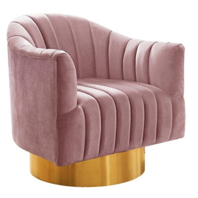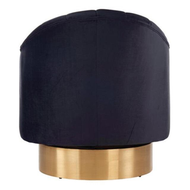 Relax and unwind in this Barrel Chair. A beautifully modern design with hints of retro flair epitomizes this lovely chair, which rests on a stainless steel base for a sleek, modern touch. The velvet upholstery gives the chair a sumptuous look, while bevelled tufting lends it a plush, welcoming feel and keeps the foam inside aloft. Also available in Gold finish.
