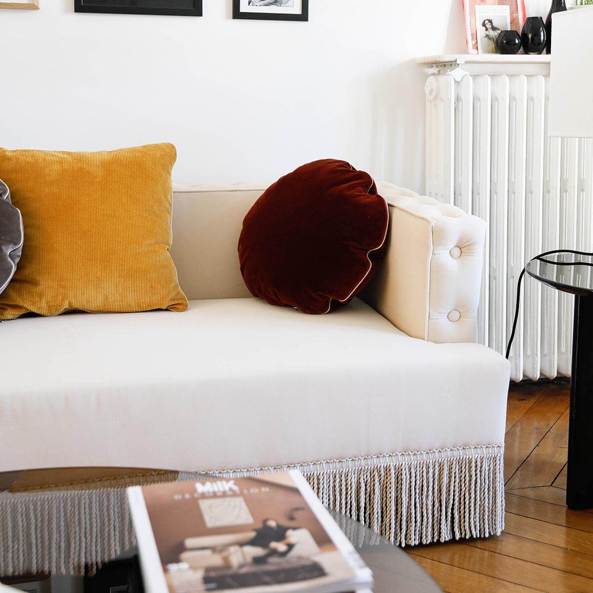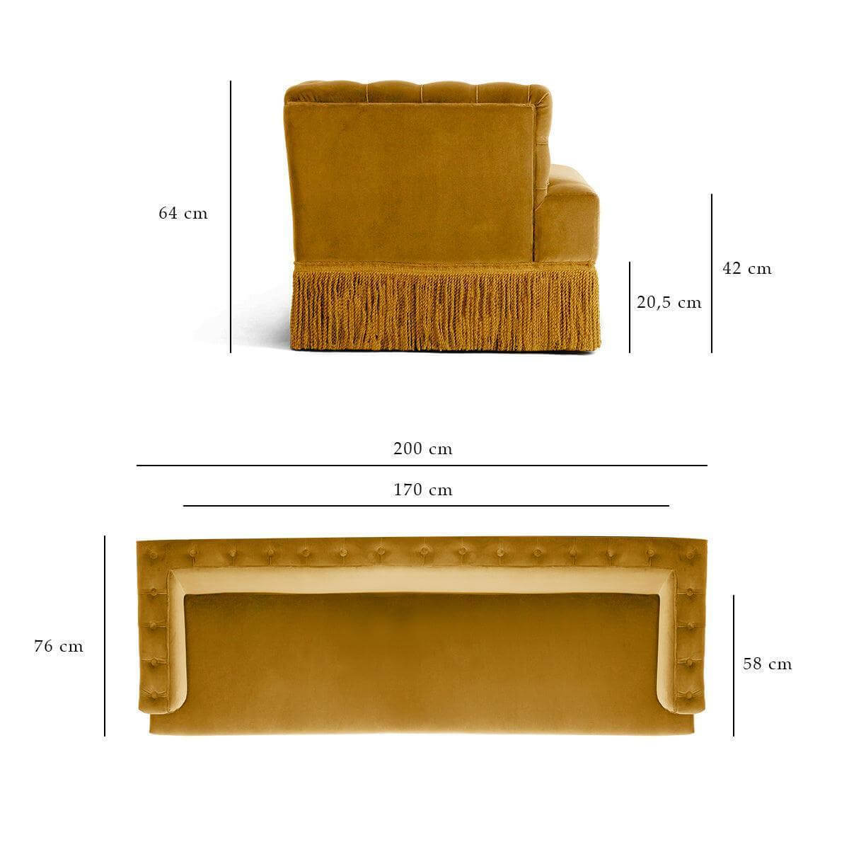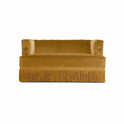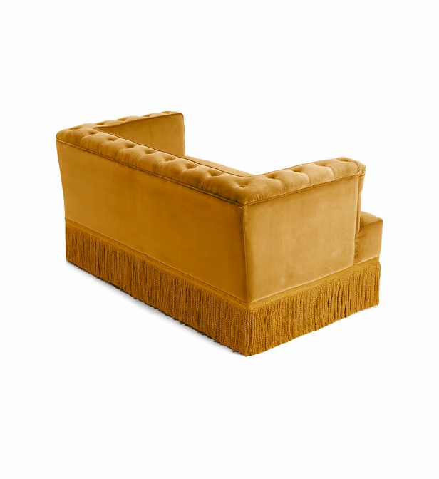 Baxter Mustard Velvet Fringe Sofa 130cm