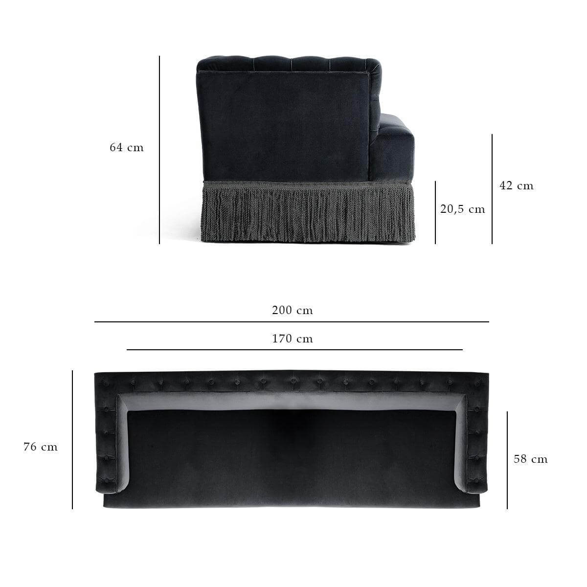 • 3 seater : 200 x 76 x h64 cm.