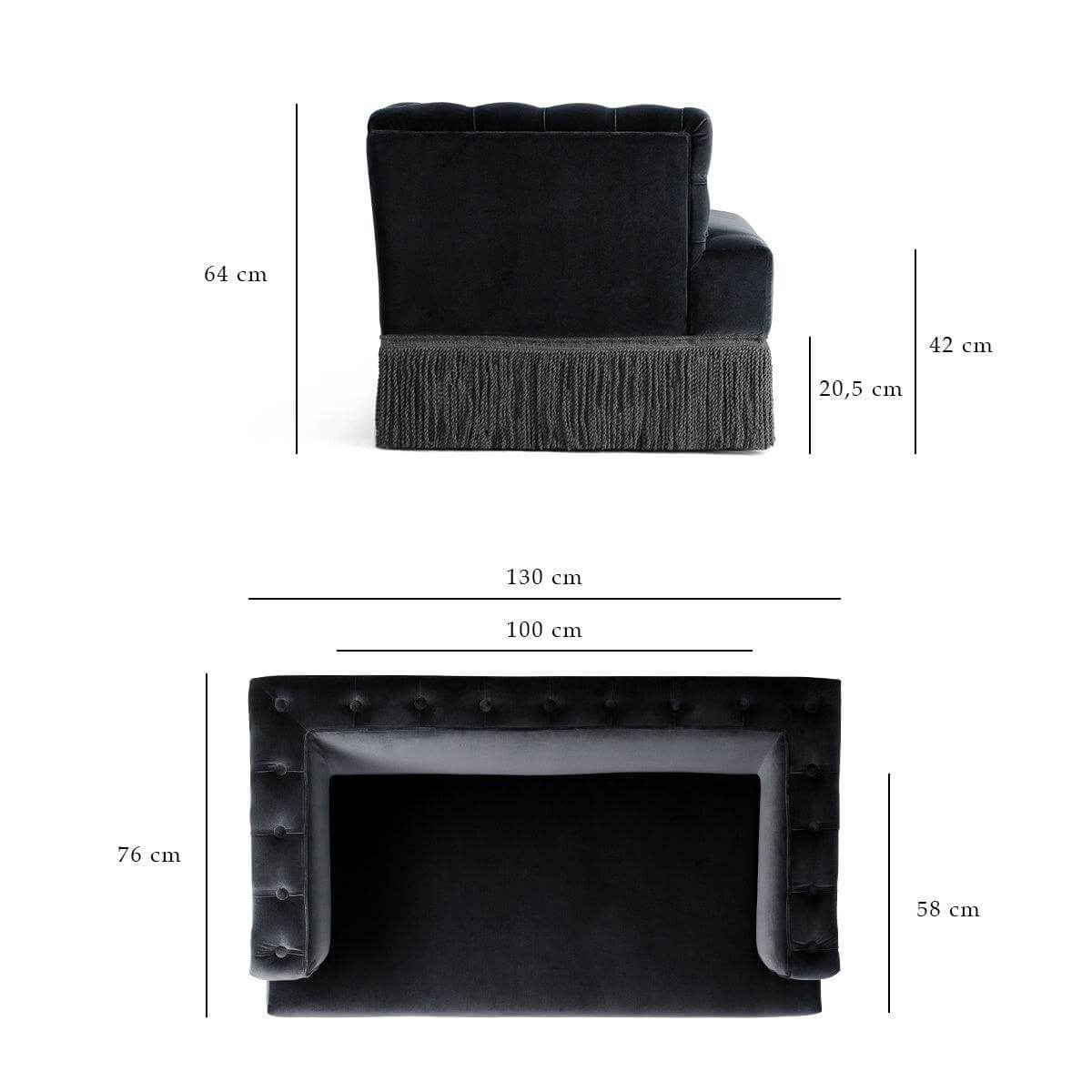 • 2 seater : 130 x 76 x h64 cm.