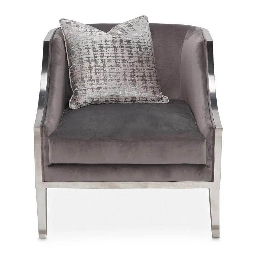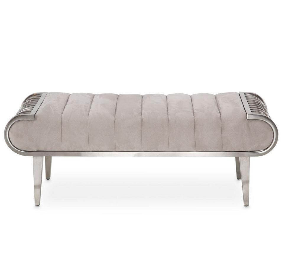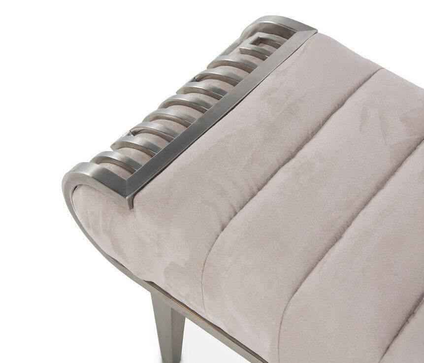 Bernhardt Light Grey Velvet Chrome Bench 130cm
