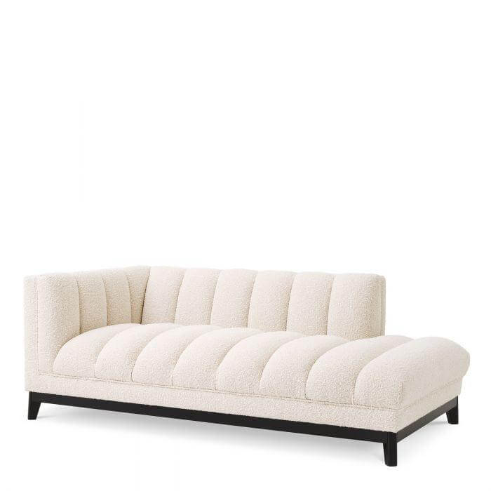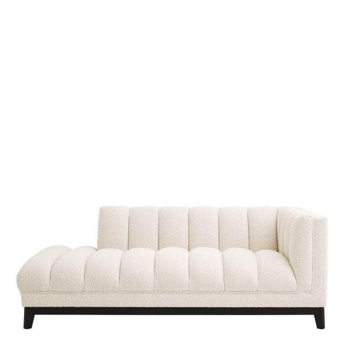Add a sense of drama to your living room with the left Lounge Sofa Chaise Bjorn. Boasting a Bouclé cream upholstery with modern style deep channel stitching and piping outlines, this sublime piece offers a lovely sink-in seating experience. Its sturdy black base gives it a powerful look.