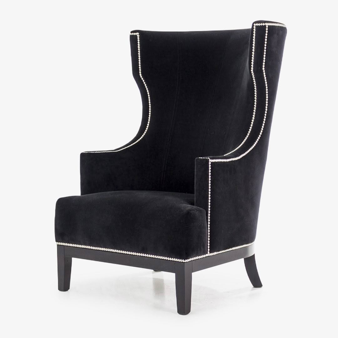 Bordeaux Black Velvet Nickel Wing Chair