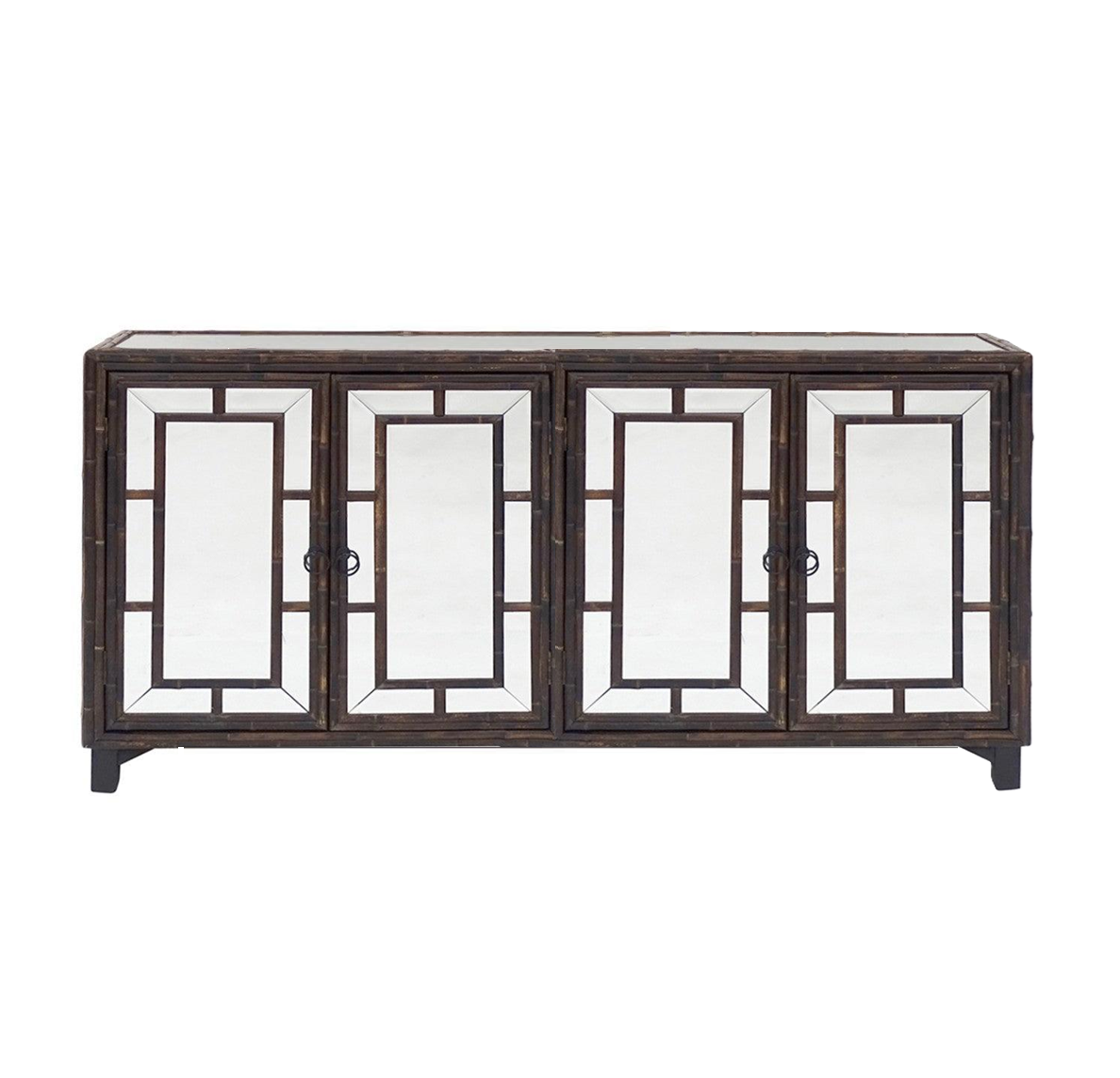 Add easy glamour to any space with this stunning mirrored buffet cabinet. Features beautiful beveled mirror panels, Tabacco bamboo and exquisite attention to detail. This large buffet piece is the perfect décor piece for bedroom side table, hallway console table, Bar display or living room storage.