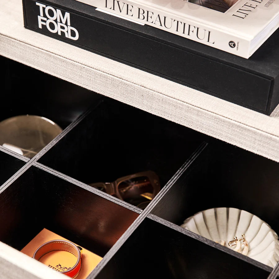 Brando Black Linen Brass Dressing Cabinet