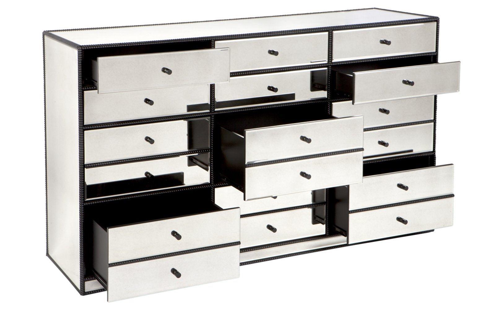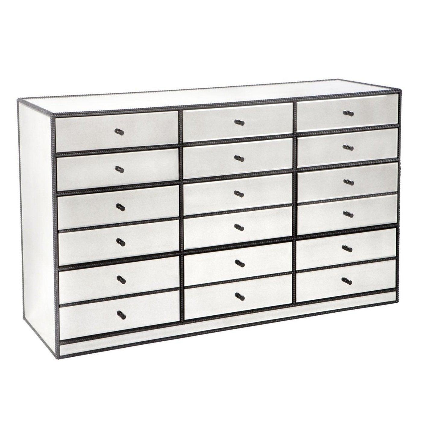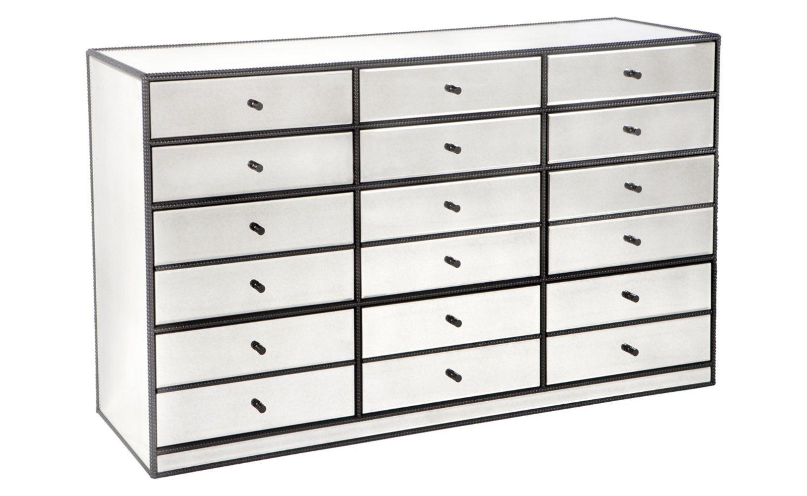 Brentwood Antique Mirror Black Dressing Cabinet. For a masculine aesthetic, the extensive Brentwood Collection combines the beauty of antique mirror with a streamlined profile and aged black beaded trim. Think black and old gold accessories and vintage leather seating.