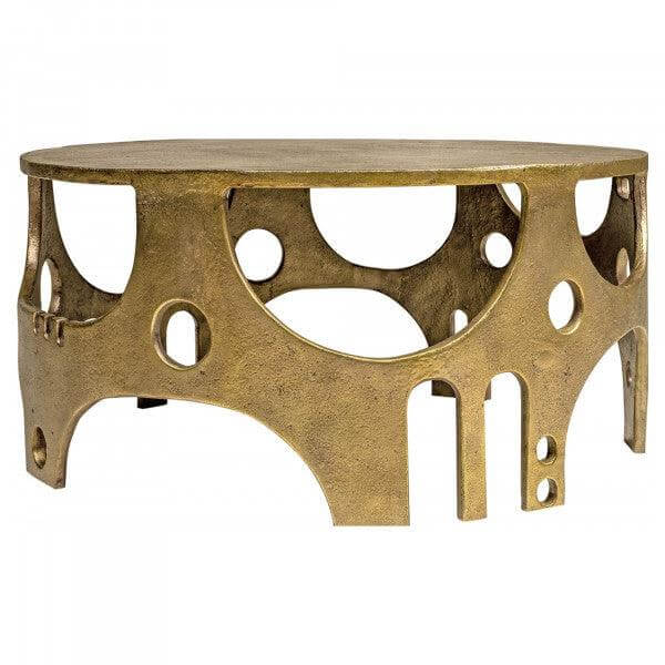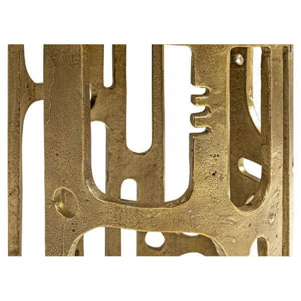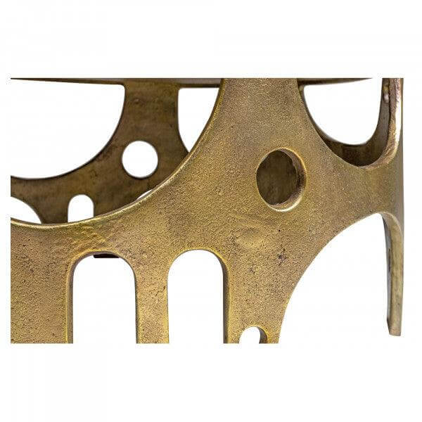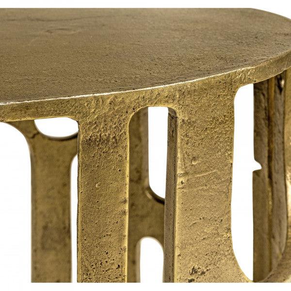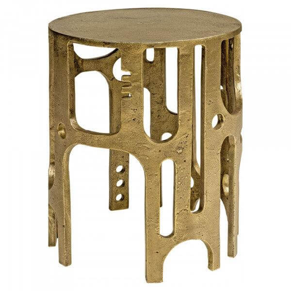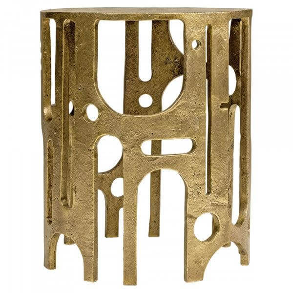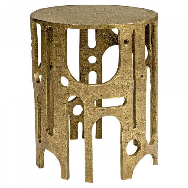 The Brutalist side table is a decorative and practical piece of furniture. Its brass colour adds style to the living room. Made of Antique finish brass coated aluminum