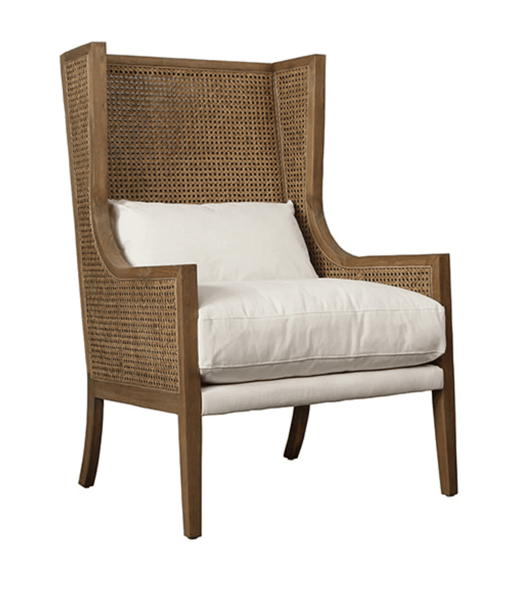 • Seat cushion upholstered in a sand white, polyester and linen blend