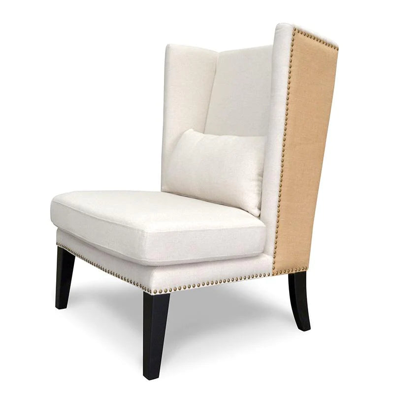 Calibre Cream linen Lounge Chair. Quality linen upholstery with matching dark cream back for a classic colour palette