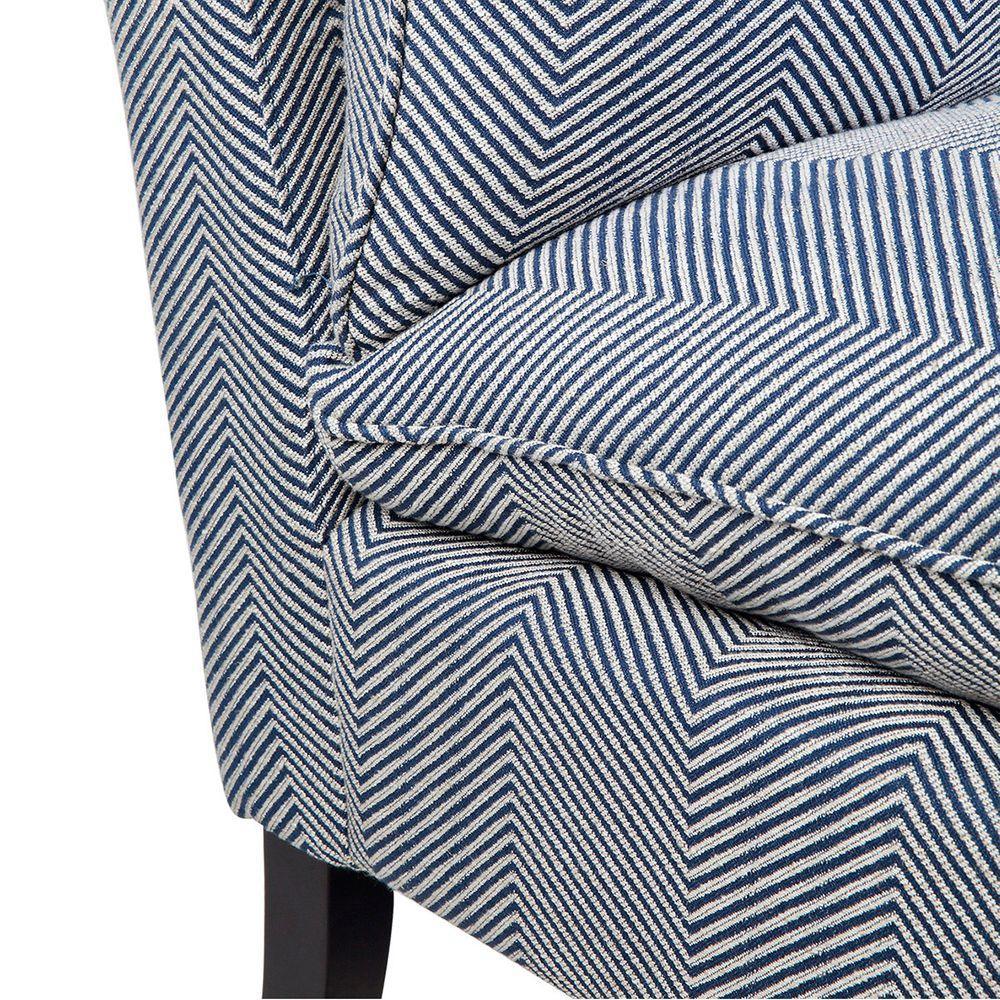 Sumptuously soft, the Candace occasional chair, upholstered in a quality blue & white chevron linen blend fabric, meticulously blends style with comfort. Classic elements such as contrasting blue linen piped edging and black turned timber legs lend traditional charm while the understated design of the Candace occasional chair gives it a relaxed, contemporary vibe. Working in well with most décor styles, from contemporary to Hamptons, the subtle pattern, Colour and texture adds designer flair.