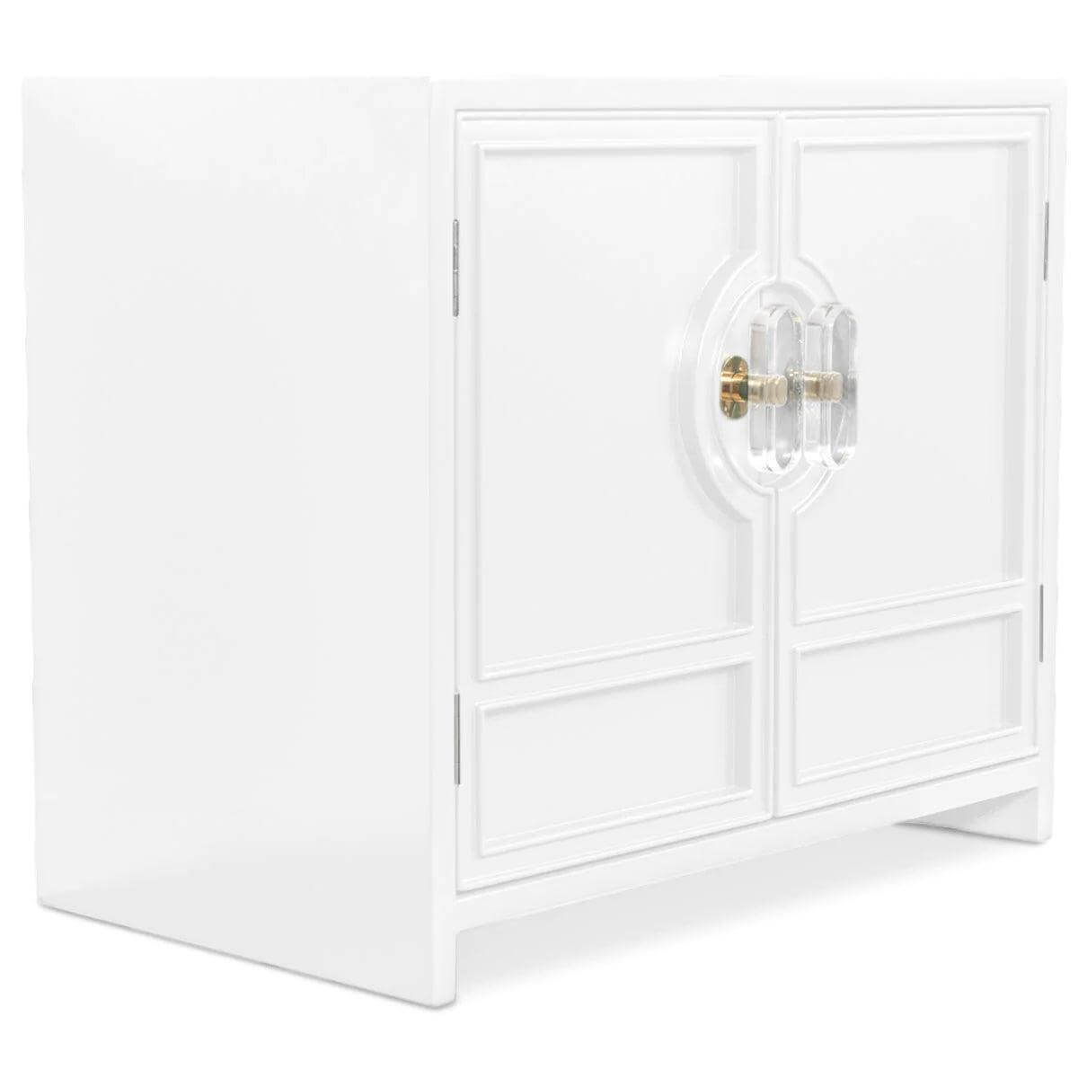 When it comes to Cannes, it is easy to imagine Hollywood Stars and elegance in the French Riviera. This Cannes side table features double doors and brass and lucite oval pulls, giving it that extra touch of elegance.