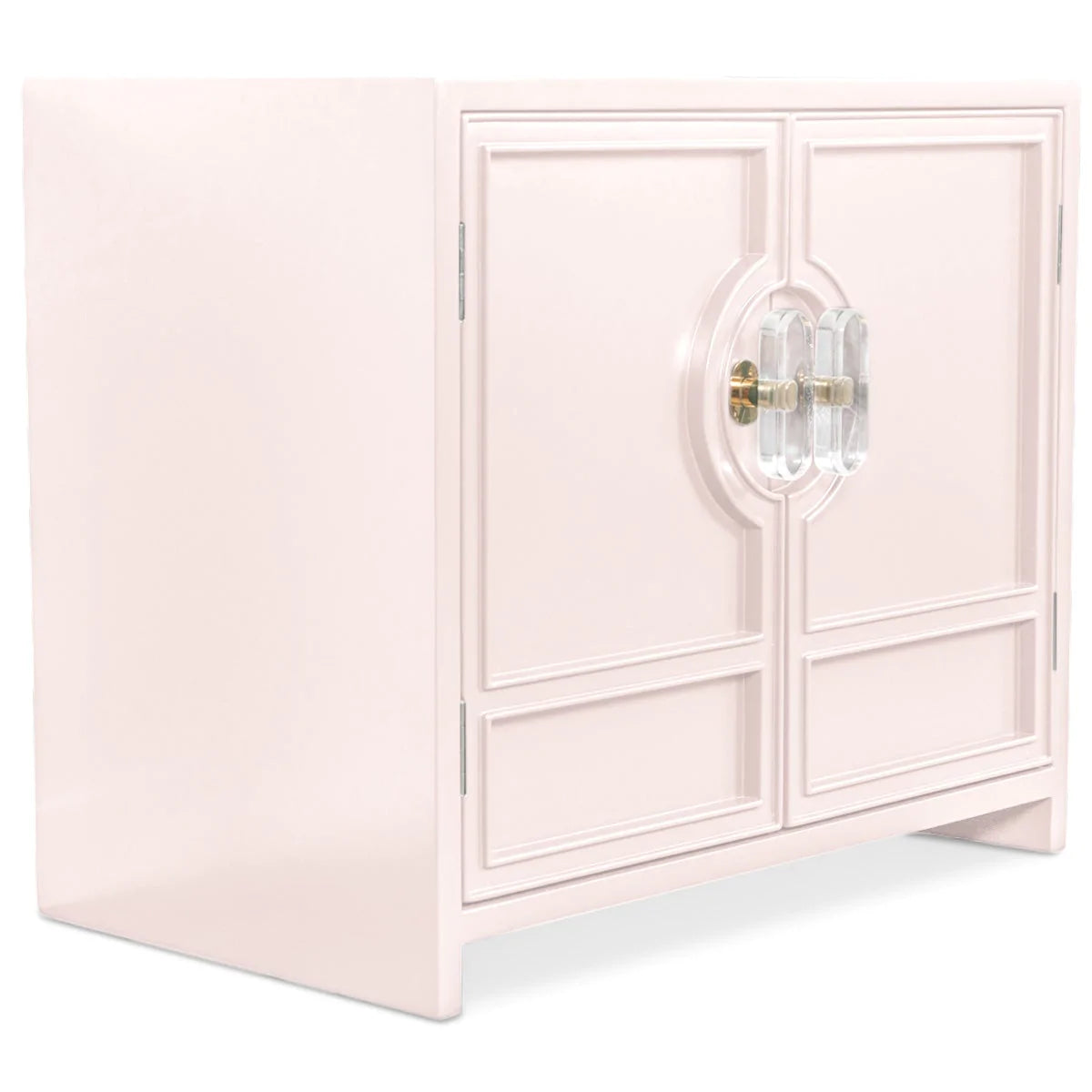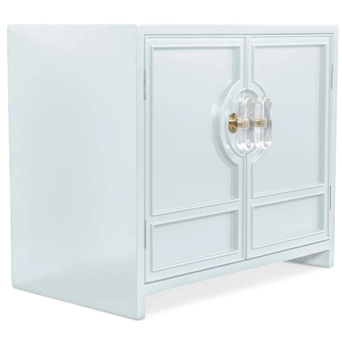 When it comes to Cannes, it is easy to imagine Hollywood Stars and elegance in the French Riviera. This Cannes side table features double doors and brass and lucite oval pulls, giving it that extra touch of elegance.
