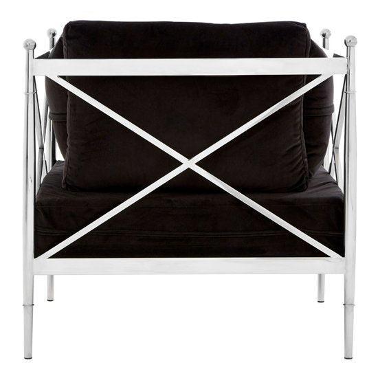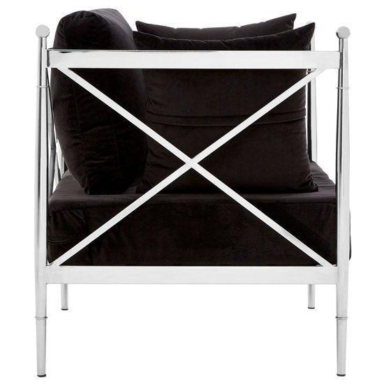 Created from strong steel, the frame of the Capri sofa boasts a cool silver finish, evoking a luxurious feel. The metallic body is counterpointed by the lush black velvet that upholsters the seat and five cushions, creating a soft textured finish. The Capri sofa is a distinctive design piece with a minimal. Angular frame that is equal parts sophisticated and opulent. Most Stylish and Unique piece of furniture